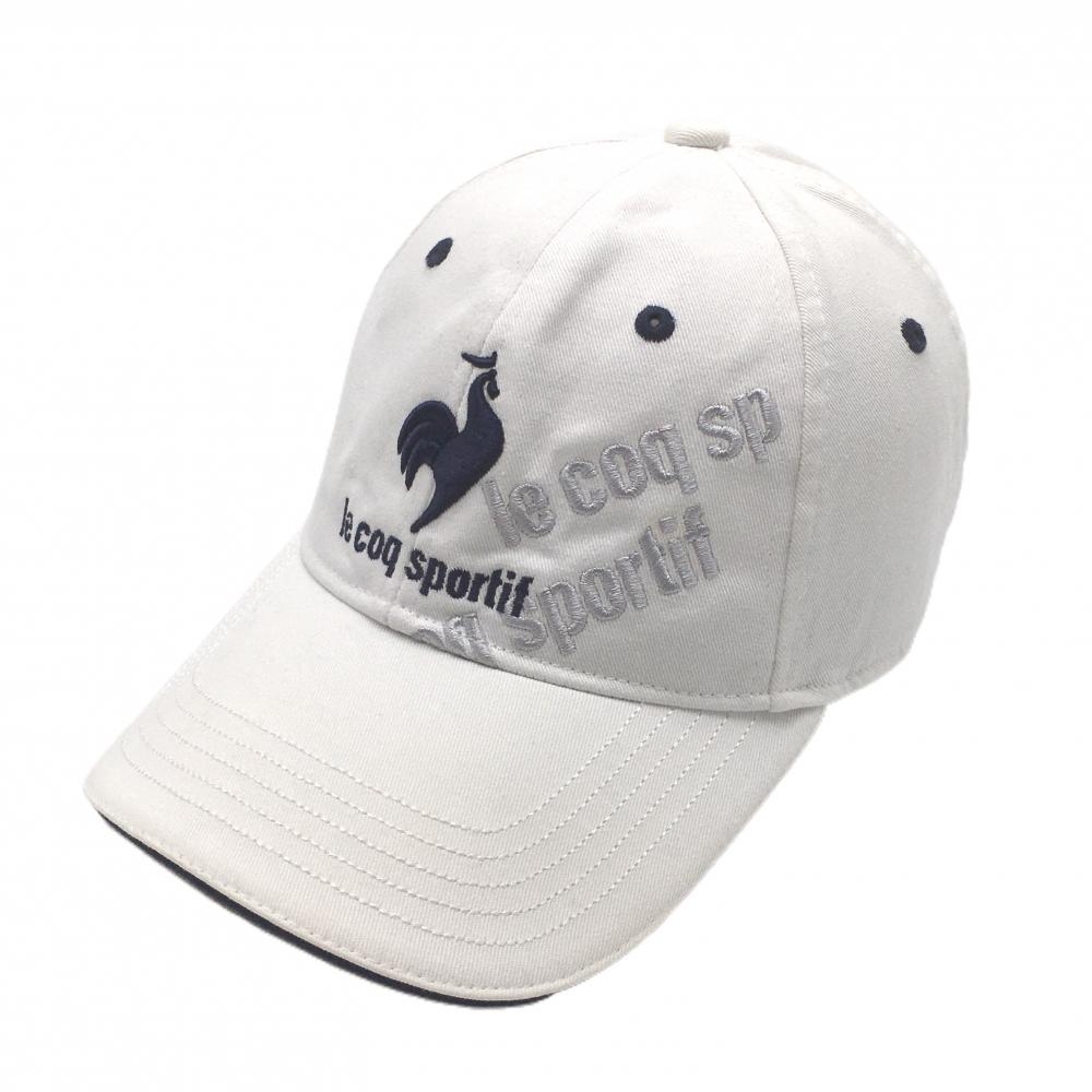 【新品】ルコックゴルフ サンバイザー 白×ネイビー つば刺しゅう F(55-57cm) ゴルフウェア le coq sportif