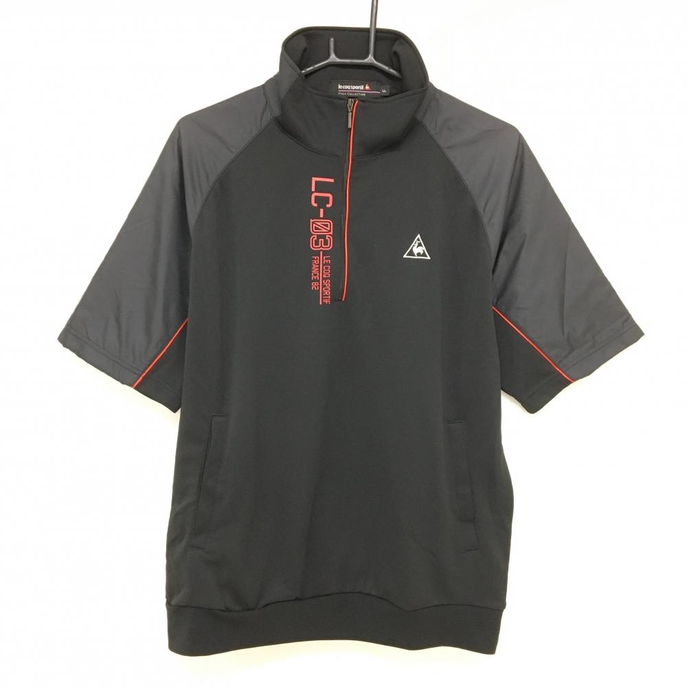 【超美品】ルコックゴルフ 半袖ハイネックブルゾン 黒×ブルーパープル系 袖ライン ハーフジップ メンズ LL ゴルフウェア le coq sportif