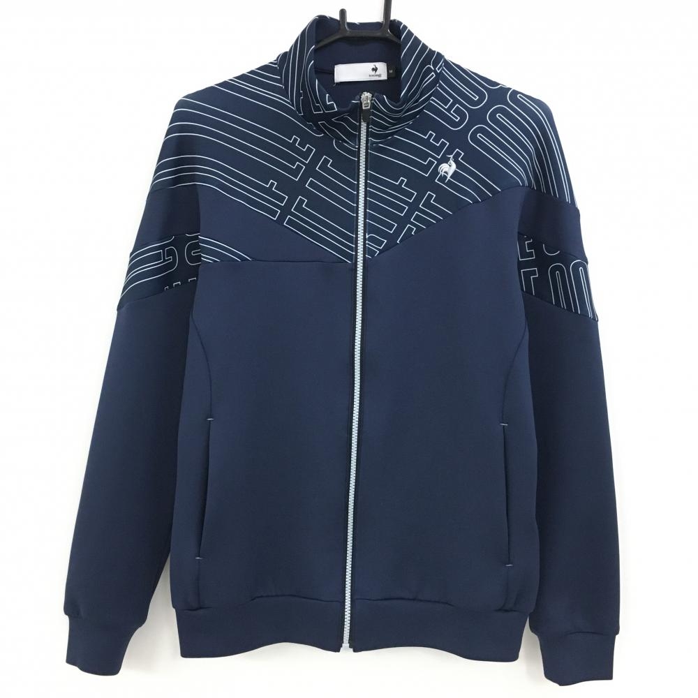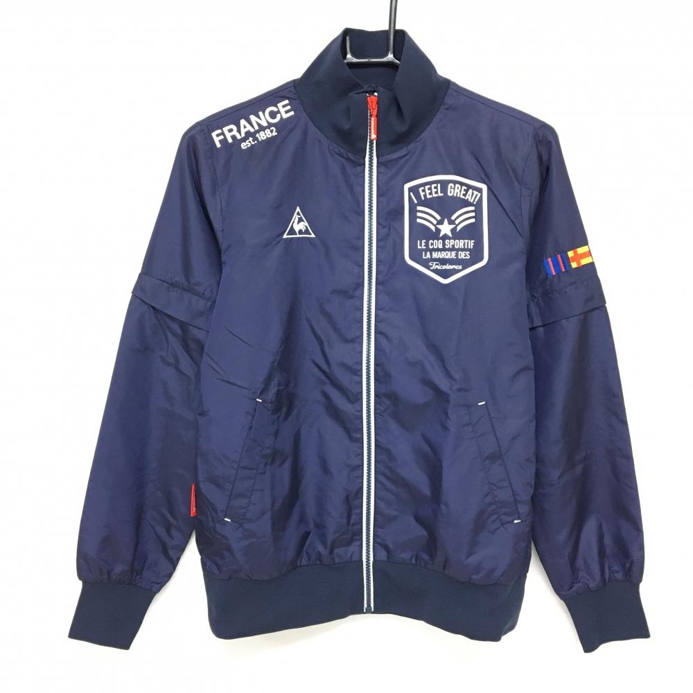【美品】ルコック ジャケット ネイビー×白 胸元トリコロールライン ロゴプリント レディース S ゴルフウェア le coq sportif