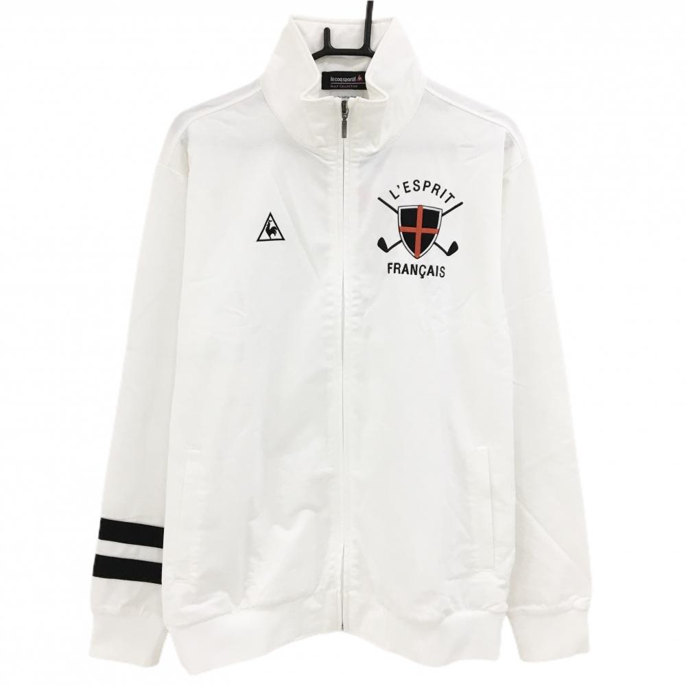 ルコックゴルフ ジャケットブルゾン 白×黒 総柄 ロゴワッペン 裏微起毛 メンズ LL ゴルフウェア le coq sportif