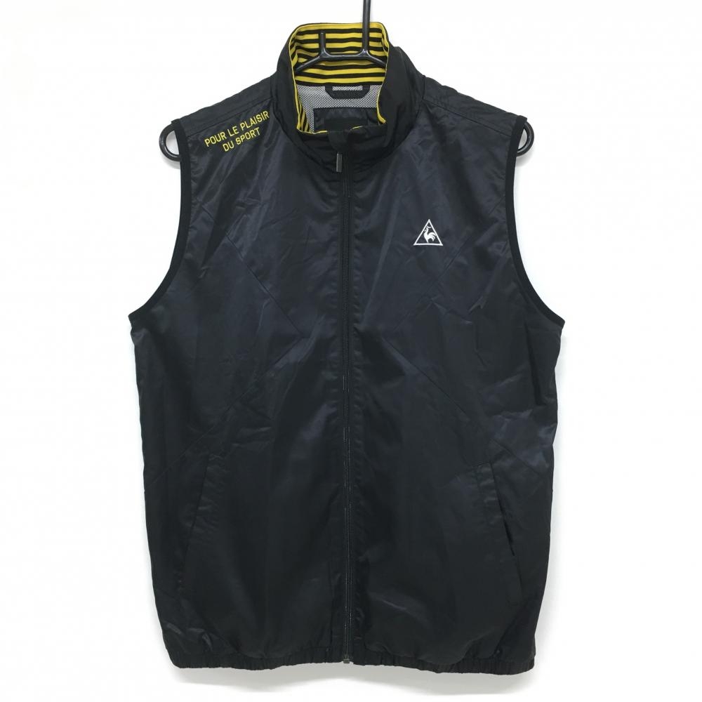 ルコックゴルフ ニットジャケット イエロー×黒 ロゴ刺しゅう 裏地付 メンズ S ゴルフウェア le coq sportif