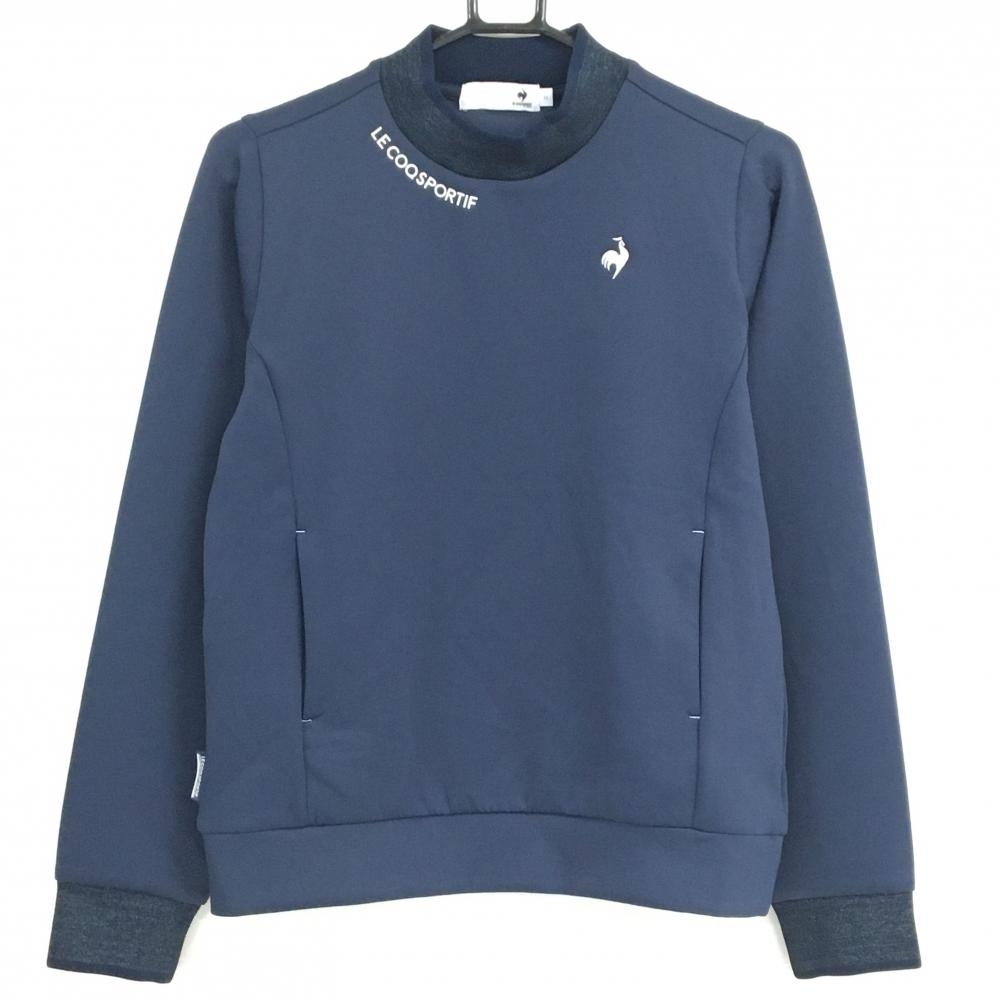 ルコックゴルフ 長袖ハイネックシャツ ネイビー×白 微起毛 ロゴ刺しゅう レディース M ゴルフウェア le coq sportif