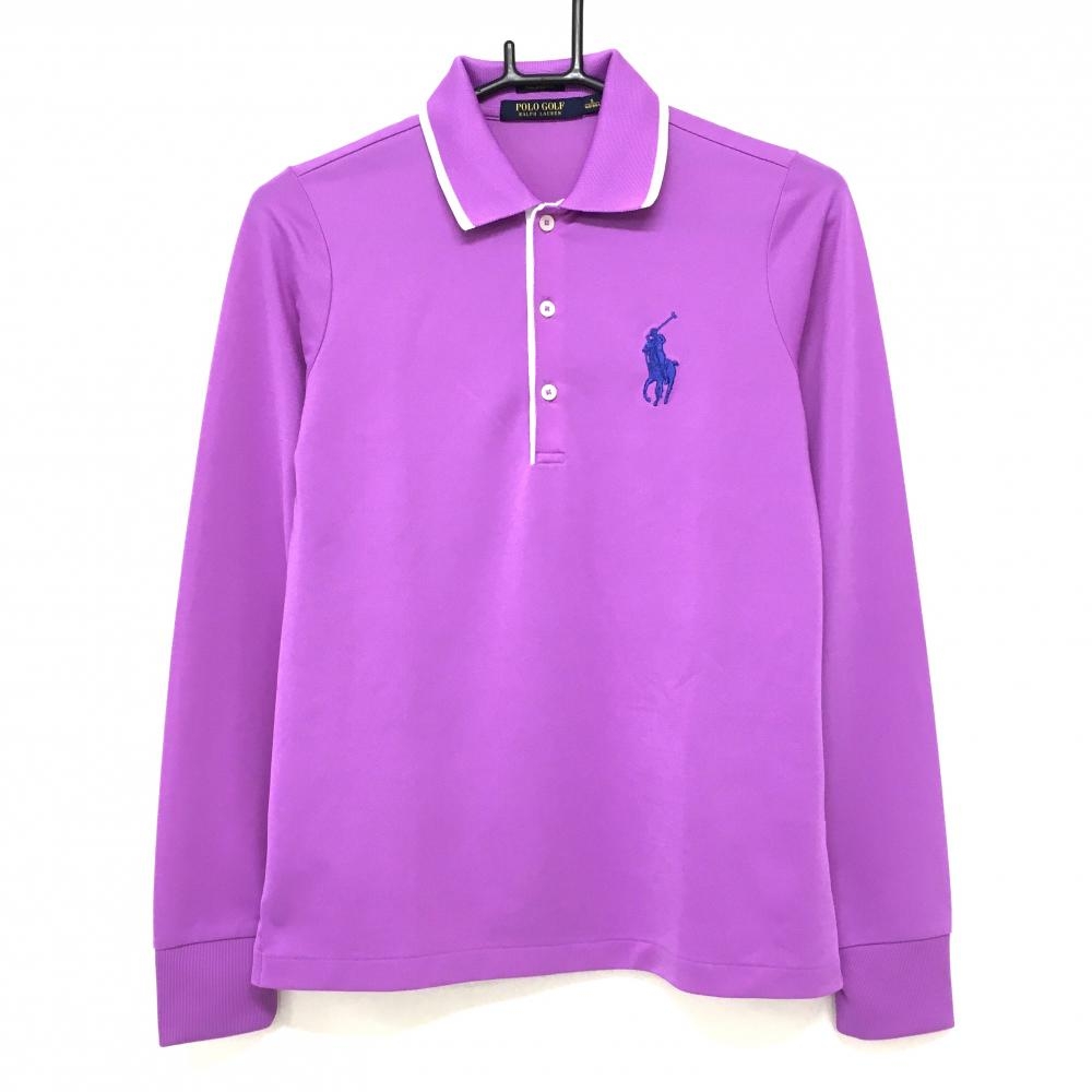 【超美品】チャンピオン 長袖ハイネックシャツ ライトパープル ワッフル生地 ワッペン レディース MEDIUM ゴルフウェア Champion