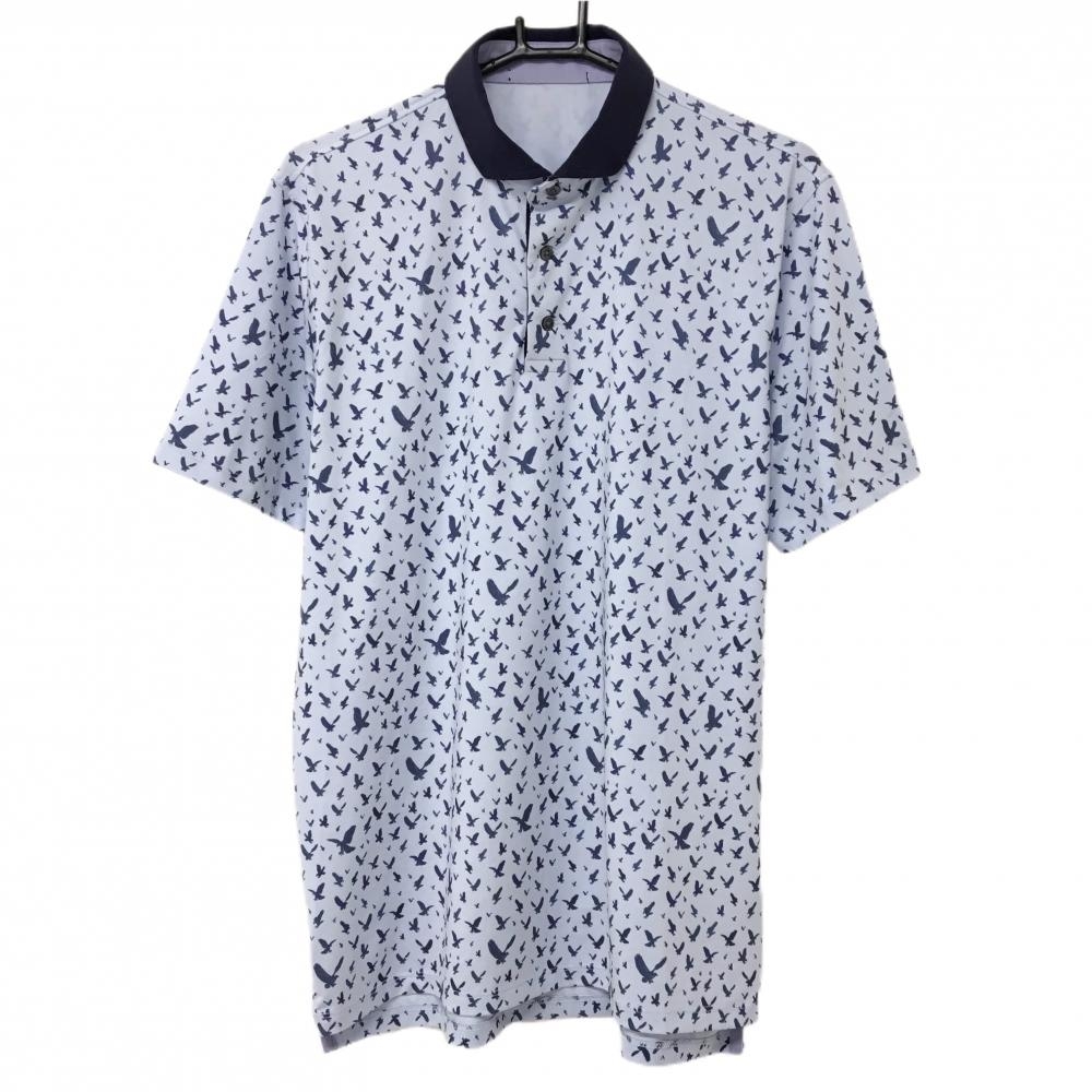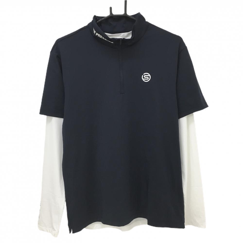 【美品】ジョルノセブン 長袖ハイネックシャツ 白×ネイビー 袖ロゴ メンズ M ゴルフウェア GIORNO SEVEN
