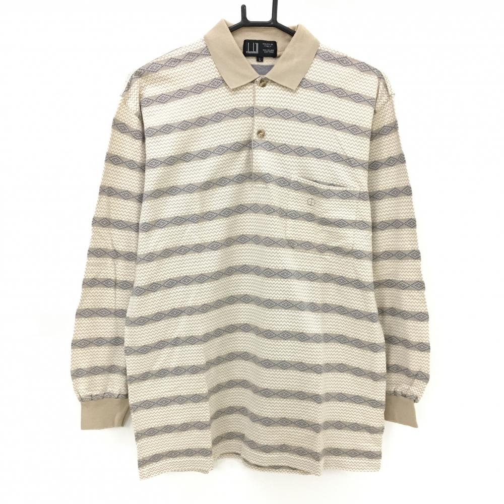 【超美品】アーノルドパーマーゴルフ 長袖ハイネックシャツ オレンジ×ベージュ系 ボーダー レディース O(XL) ゴルフウェア Arnold Palmer