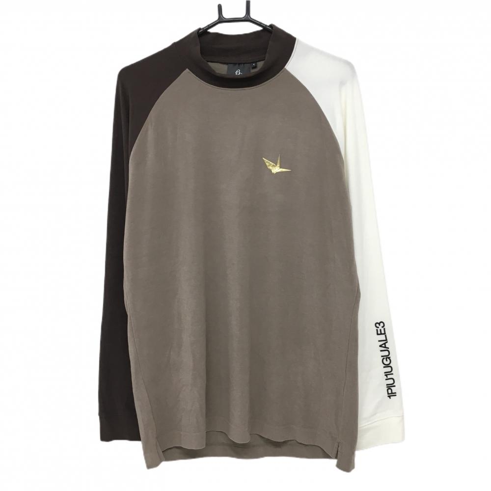 【超美品】フェリージゴルフ 長袖ハイネックシャツ 杢グレー 羊毛100% 人工皮革ワッペン メンズ M ゴルフウェア Felisi IL GOLF