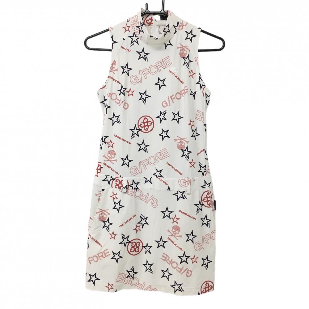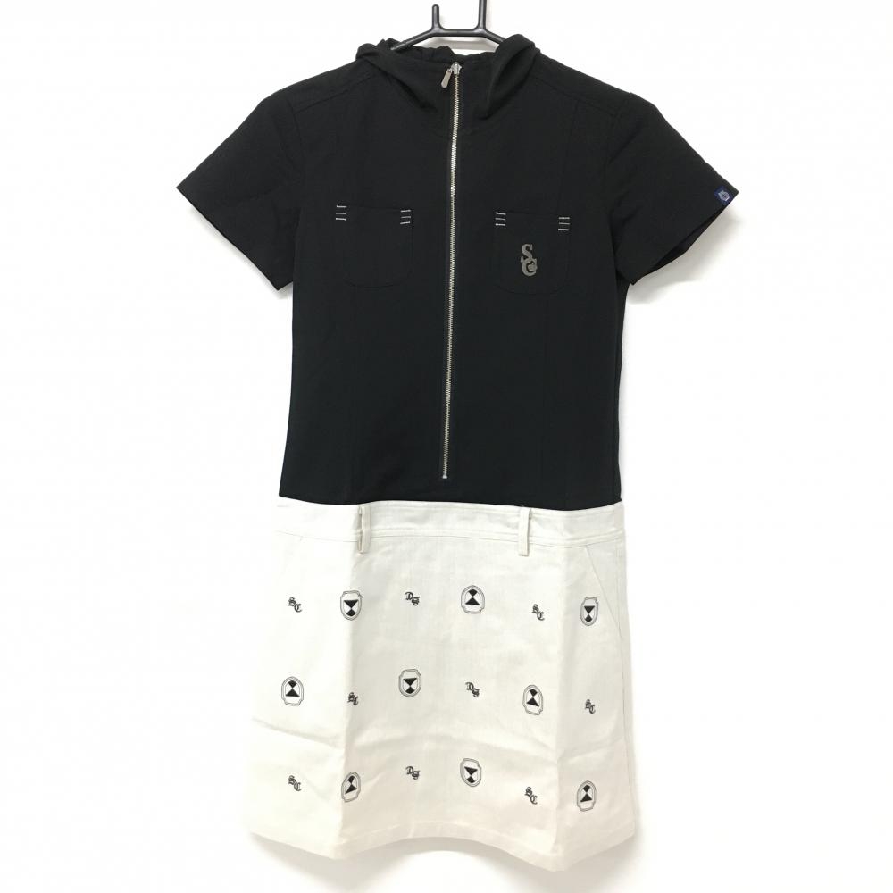 【美品】ポールスチュアートスポーツ ノースリーブワンピース 白×黒 前身頃ヘリンボーン柄 レディース M ゴルフウェア Paul Stuart SPORT