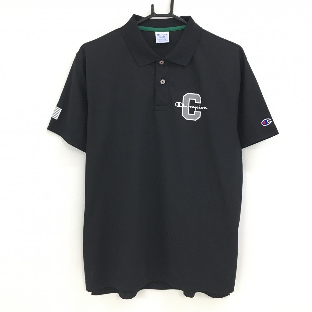 チャンピオン タートルネックセーター 黒×イエロー 袖星条旗 腹部ポケット レディース LARGE ゴルフウェア Champion