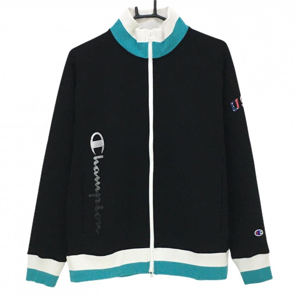 【美品】チャンピオン ニットジップパーカー 杢ネイビー 国旗ワッペン 裏微起毛 レディース MEDIUM ゴルフウェア Champion