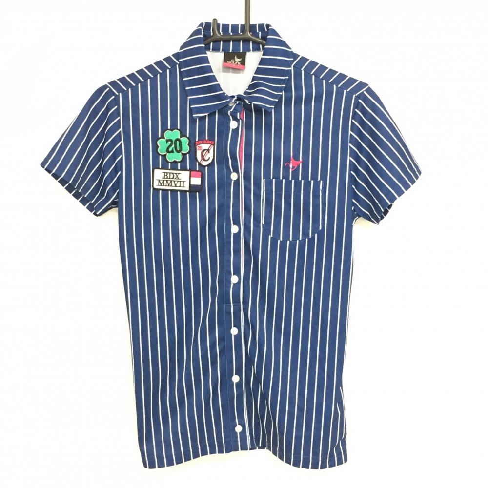 【超美品】エピキュール パンツ ネイビー×白 ストライプ ストレッチ レディース O ゴルフウェア Epicure