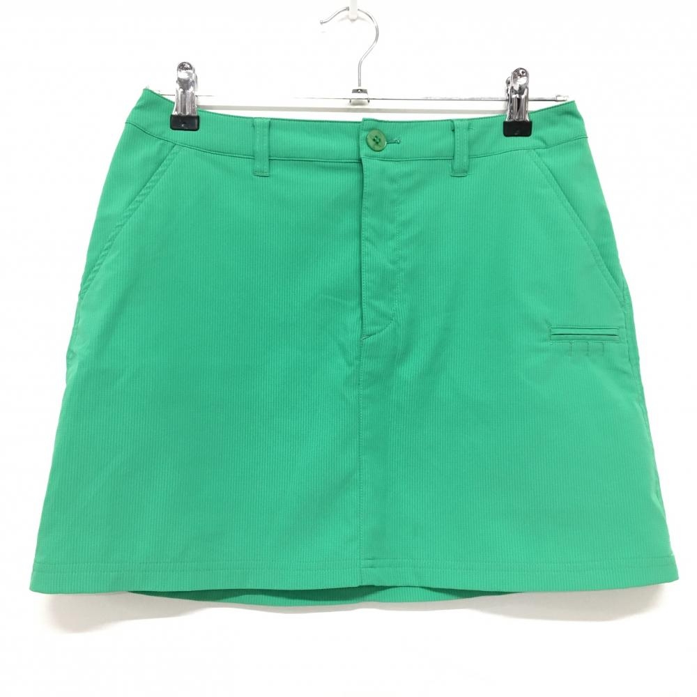 ハチヤーズ スカート カーキ×黒 サイドロゴ 裾一部プリーツ レディース L ゴルフウェア 8YARDS