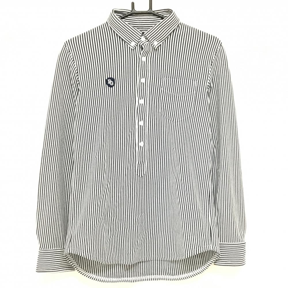 【美品】パーリーゲイツ 長袖ポロシャツ ネイビー×白 ストライプ ボタンダウン レディース 0(S) ゴルフウェア PEARLY GATES