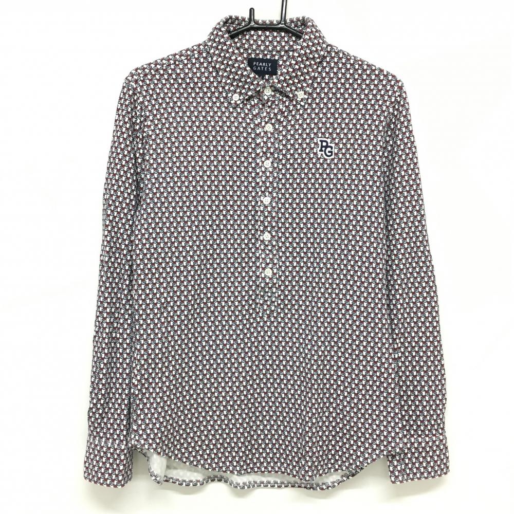 【美品】パーリーゲイツ 長袖ハイネックシャツ 白×ネイビー ボーダー ロゴプリント レディース 1(M) ゴルフウェア PEARLY GATES