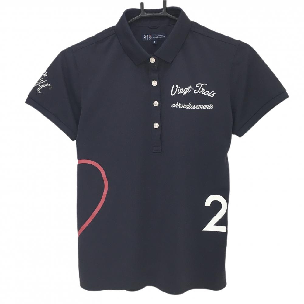 【美品】23区ゴルフ リバーシブルジャケット ネイビー×白 ネック・袖口・裾ライン 裏ニット レディース I(M) ゴルフウェア 23区