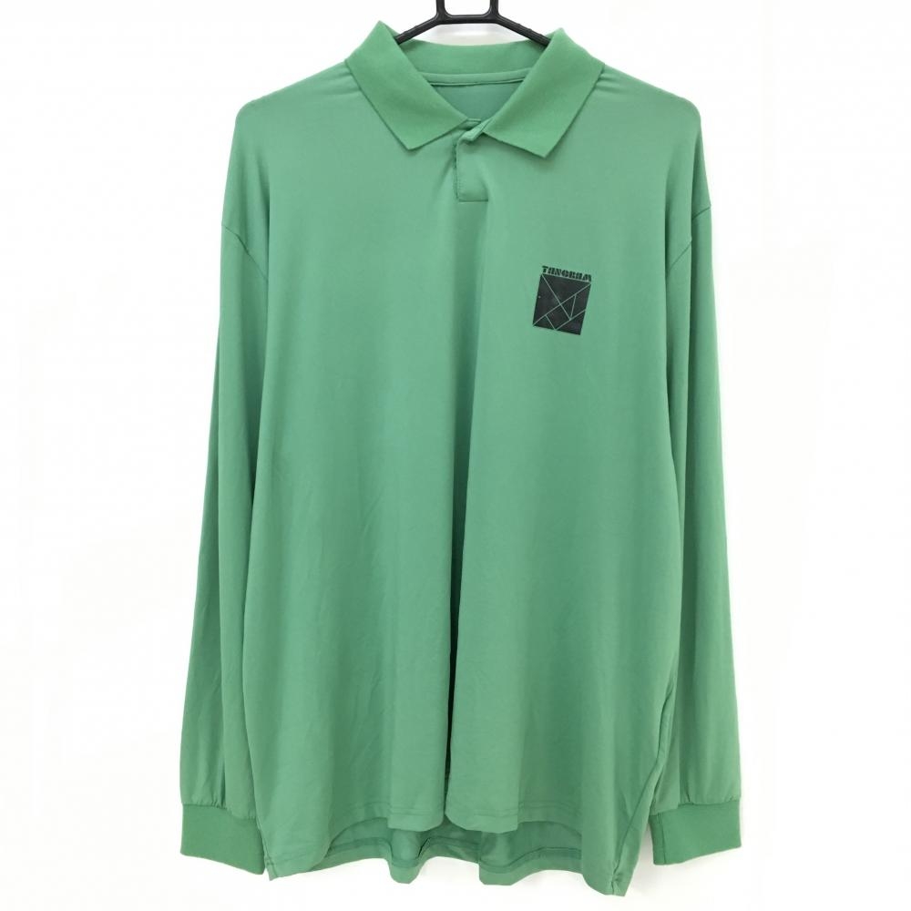 【美品】ジャックバニー 長袖ハイネックシャツ グリーン×白 ボーダー ロゴ レディース 0(S) ゴルフウェア Jack Bunny