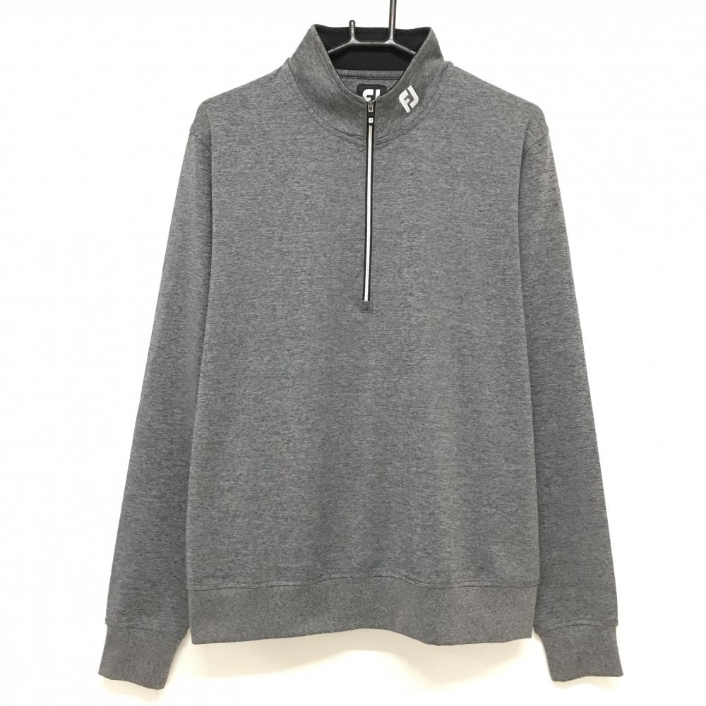 【美品】フットジョイ 長袖ポロシャツ ネイビー 地模様 ロゴ刺しゅう ボタンダウン メンズ M ゴルフウェア FootJoy