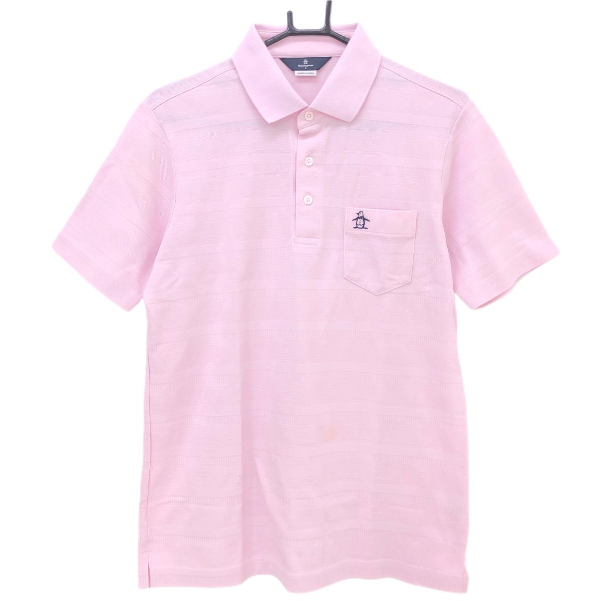 【美品】マンシングウェア 長袖ポロシャツ レッド 地模様 ロゴ刺しゅう ボタンダウン 日本製 メンズ L ゴルフウェア Munsingwear