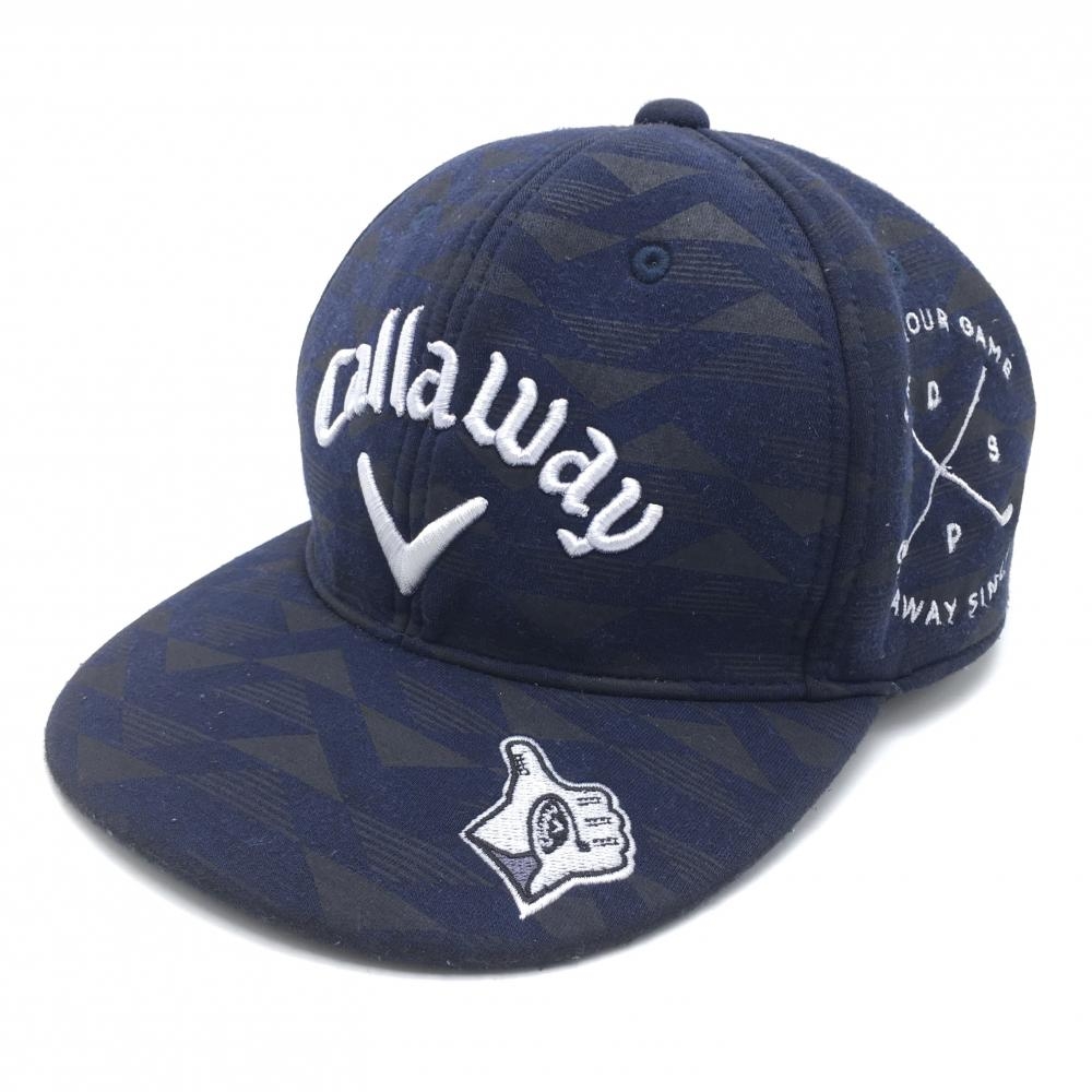 【美品】キャロウェイ ニットキャップ ネイビー 一部ケーブル編み ラメ糸混 ロゴ白 FR ゴルフウェア Callaway