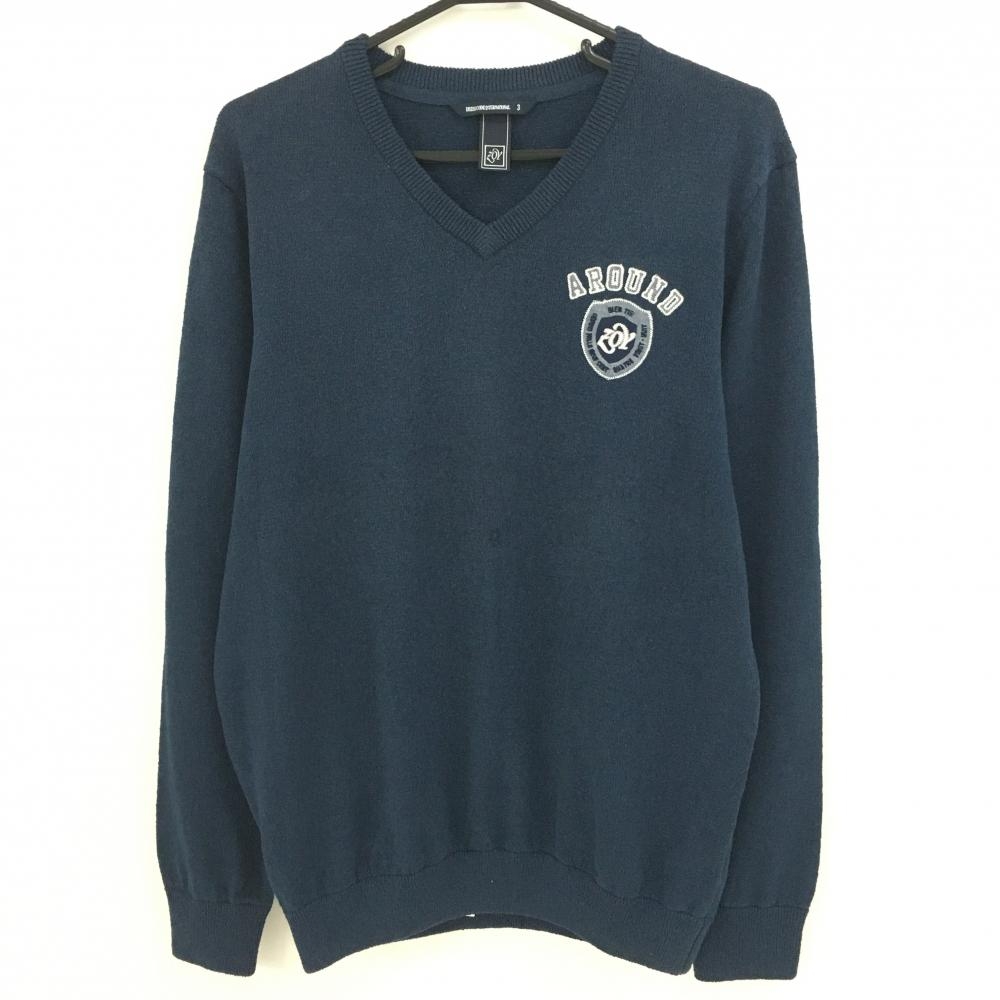 キスオンザグリーン セーター ブルー×イエロー パイル地ロゴ ウール混 ニット レディース 3(L) ゴルフウェア kiss on the green