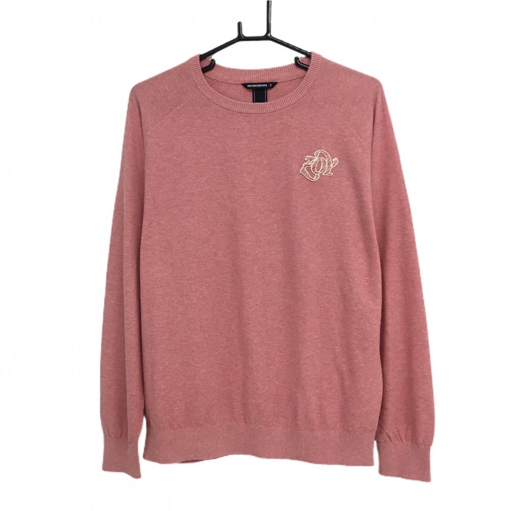 パーリーゲイツ ハイネックセーター ピンク×白 ロゴ ニット レディース 2(L) ゴルフウェア PEARLY GATES