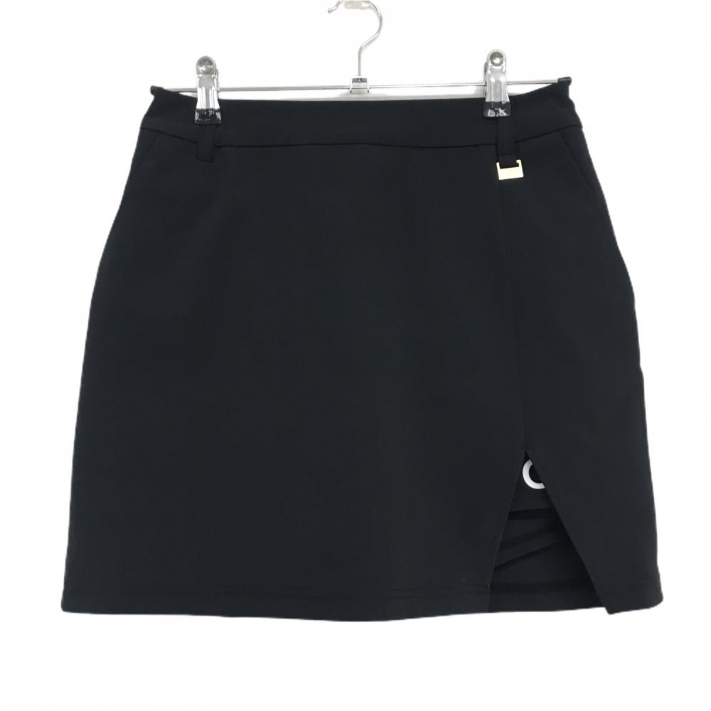 【美品】マンシングウェア スカート 黒×ライトグレー サイドライン ロゴ刺しゅう レディース L ゴルフウェア Munsingwear