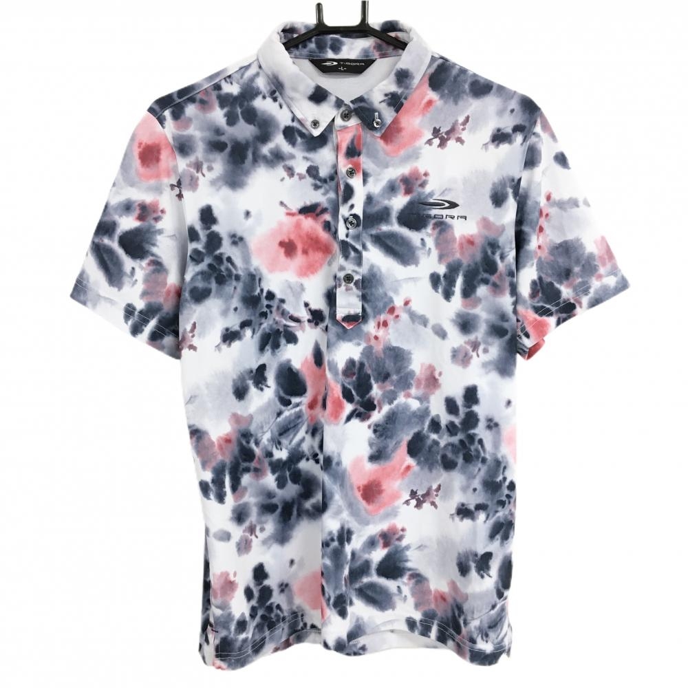 【超美品】キャロウェイ 半袖ブルゾン 白×グレー ダイヤ総柄 ハーフジップ 裏地メッシュ メンズ M ゴルフウェア Callaway