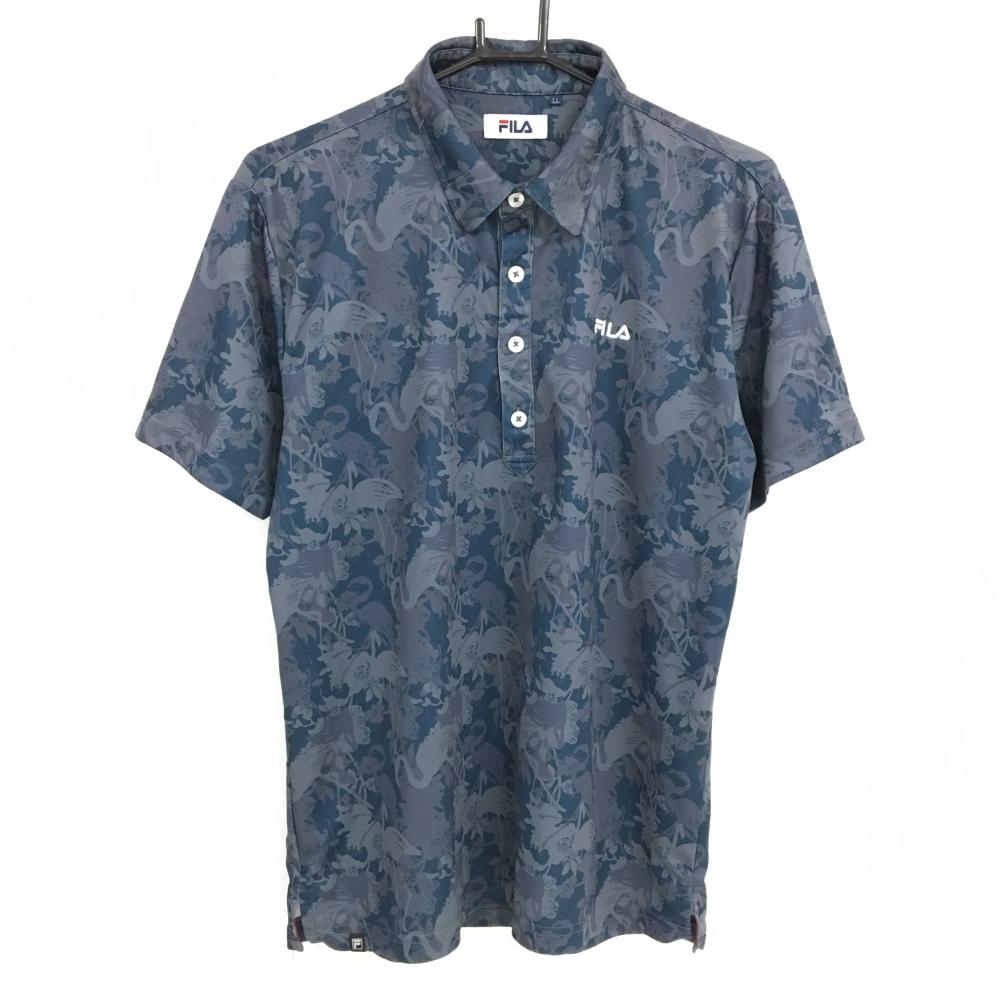 【超美品】ルコックゴルフ 半袖中綿ブルゾン グレー×白 英字総柄 ハーフジップ メンズ LL ゴルフウェア le coq sportif