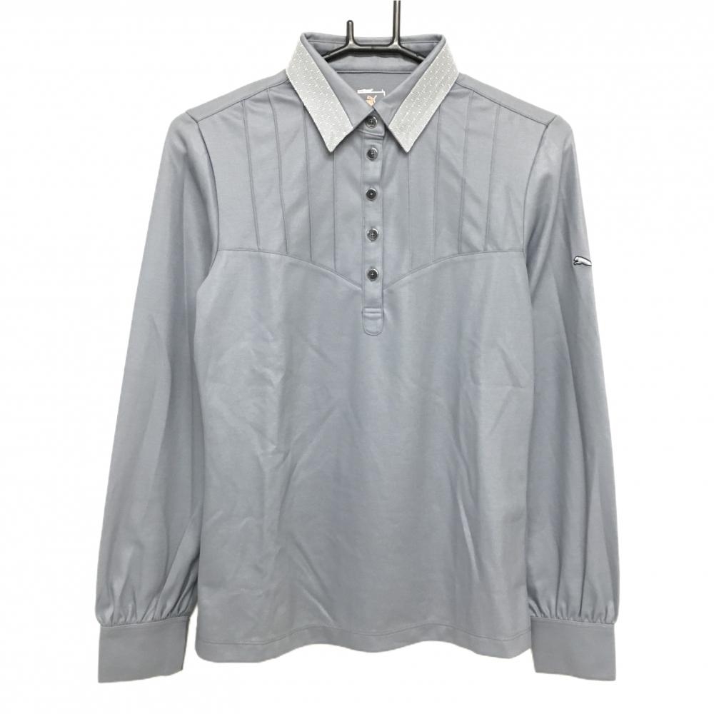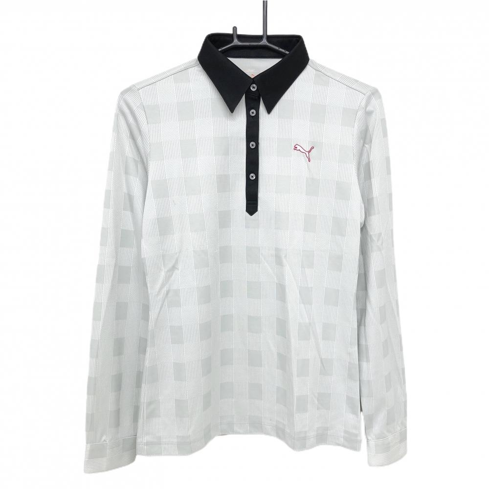 【美品】プーマ 長袖ハイネックシャツ 白×グレー ボーダー レディース L ゴルフウェア PUMA