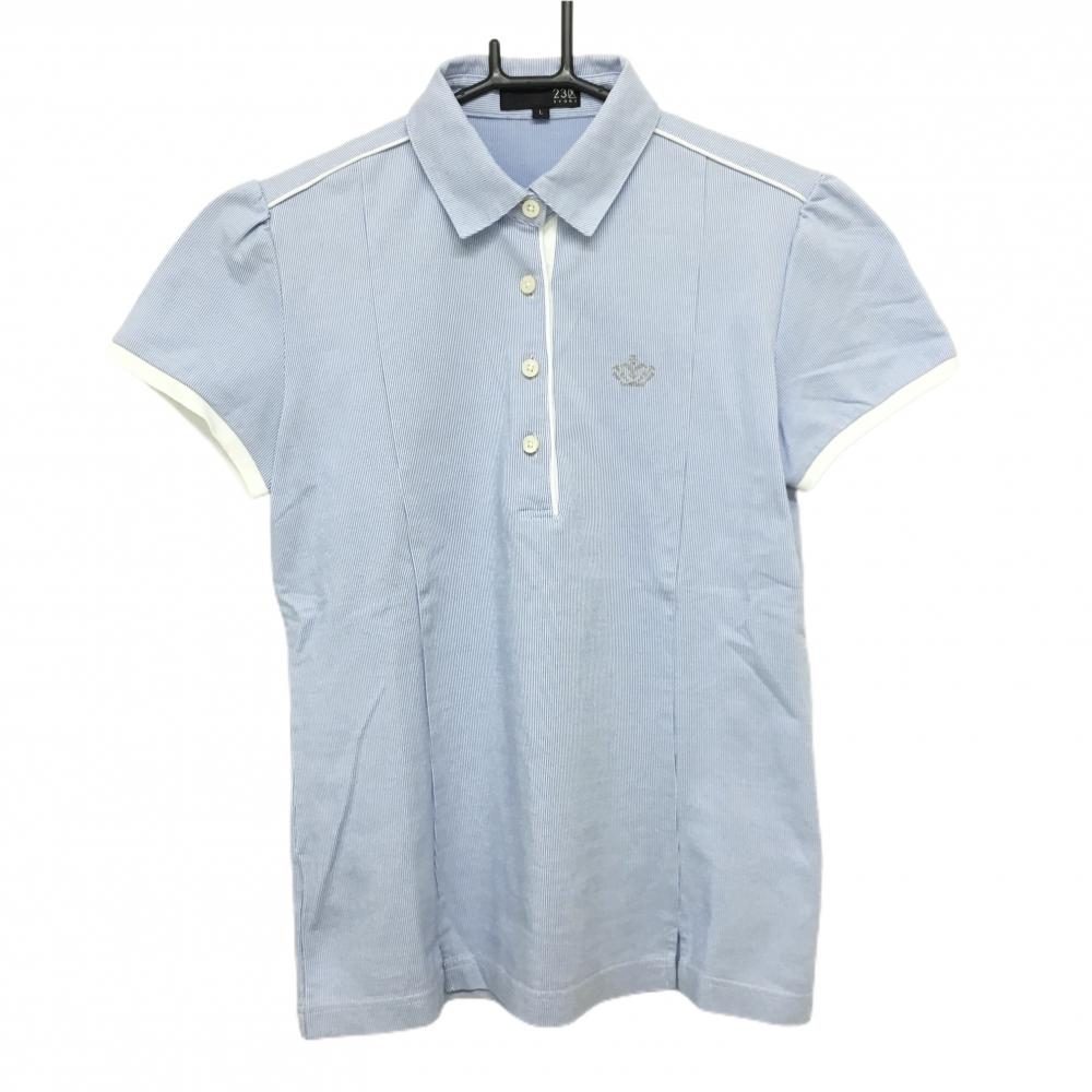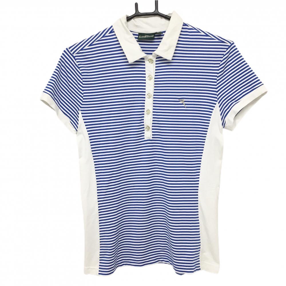 【美品】パーリーゲイツ 長袖ポロシャツ ネイビー×白 ストライプ ボタンダウン レディース 0(S) ゴルフウェア PEARLY GATES