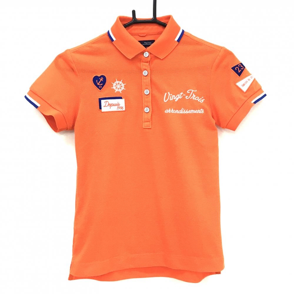 【超美品】ルコックゴルフ 2WAYジャケット オレンジ ロゴ刺しゅう 袖着脱可 裏地メッシュ レディース S ゴルフウェア le coq sportif