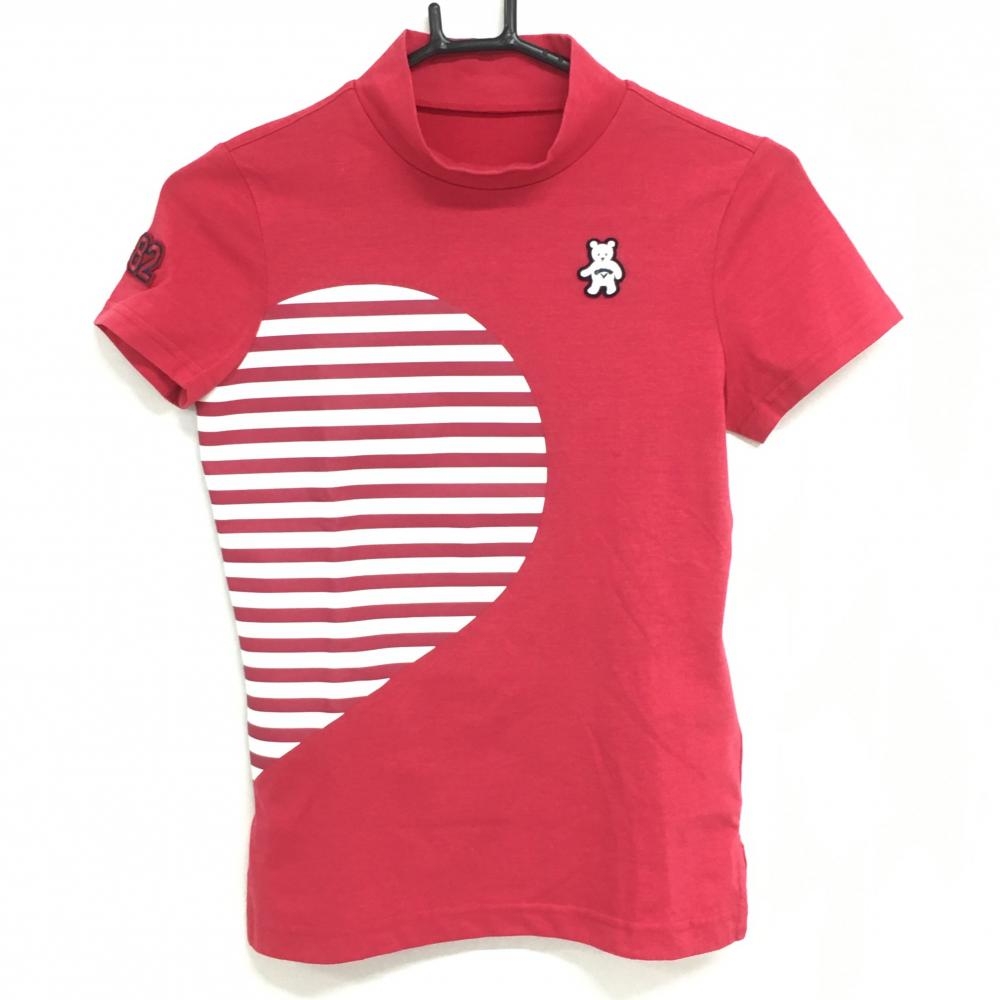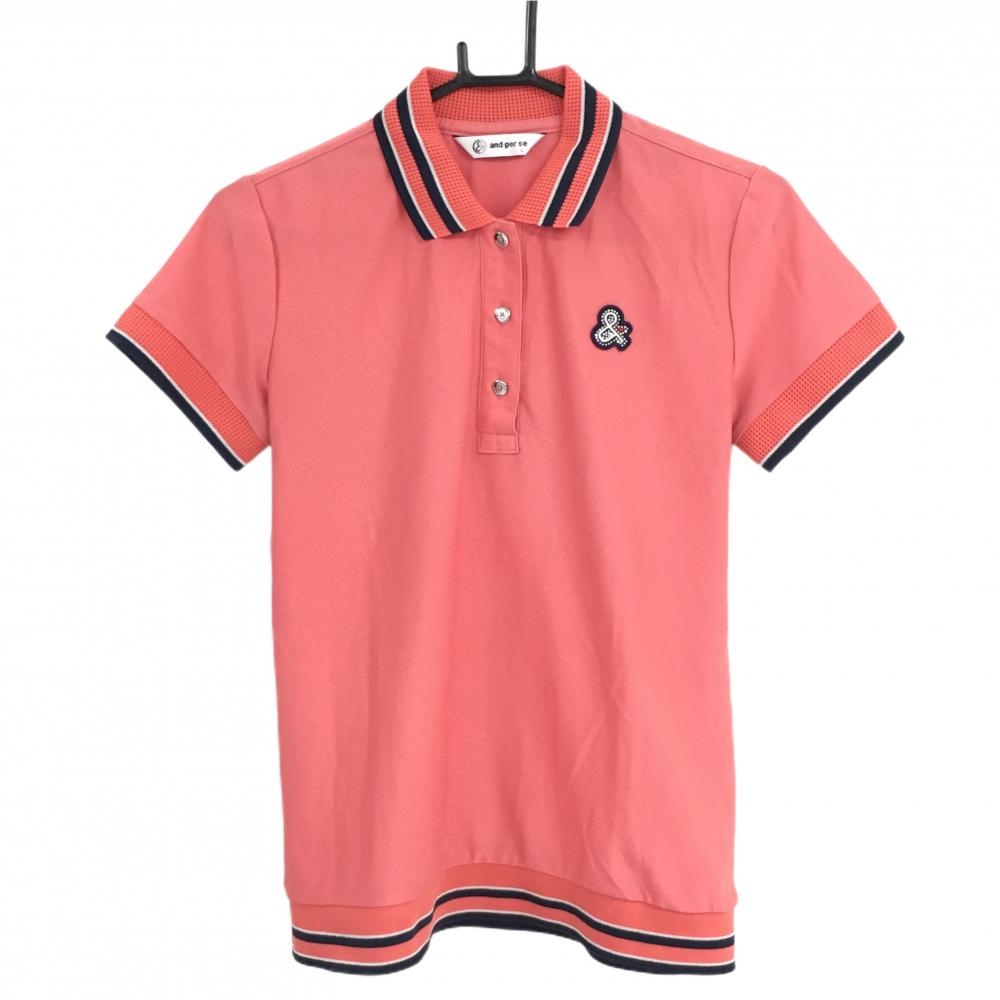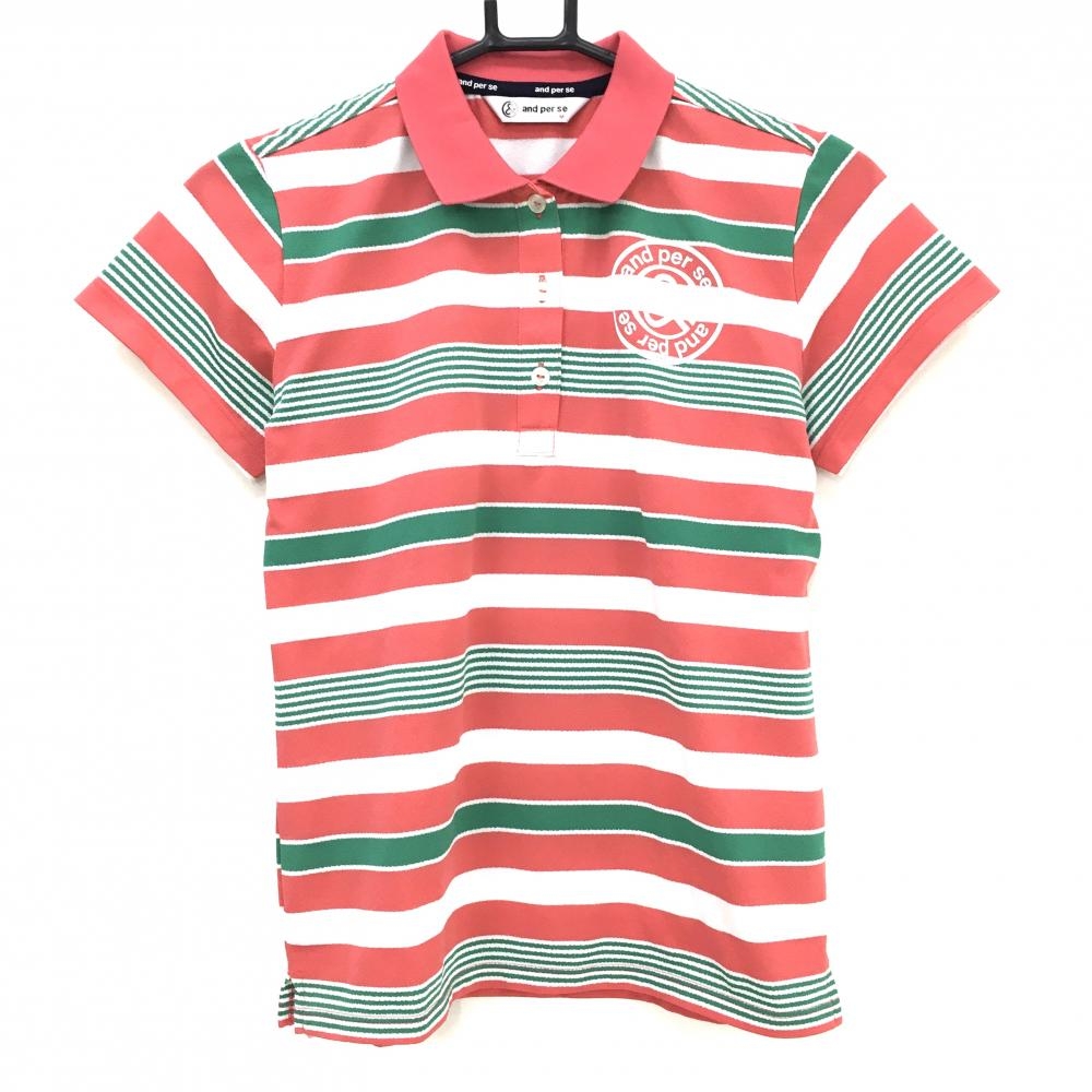 【美品】アンパスィ 長袖タートルネックシャツ レッド×ネイビー×白 ボーダー 袖シャーリング レディース M ゴルフウェア and per se