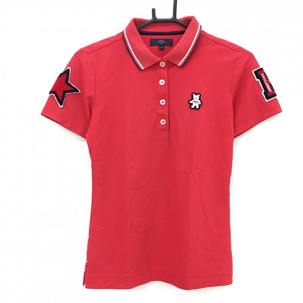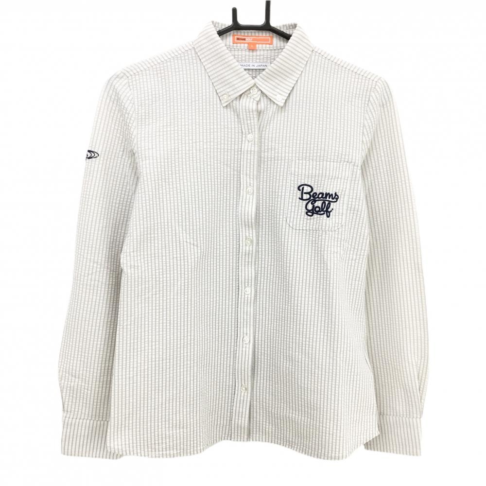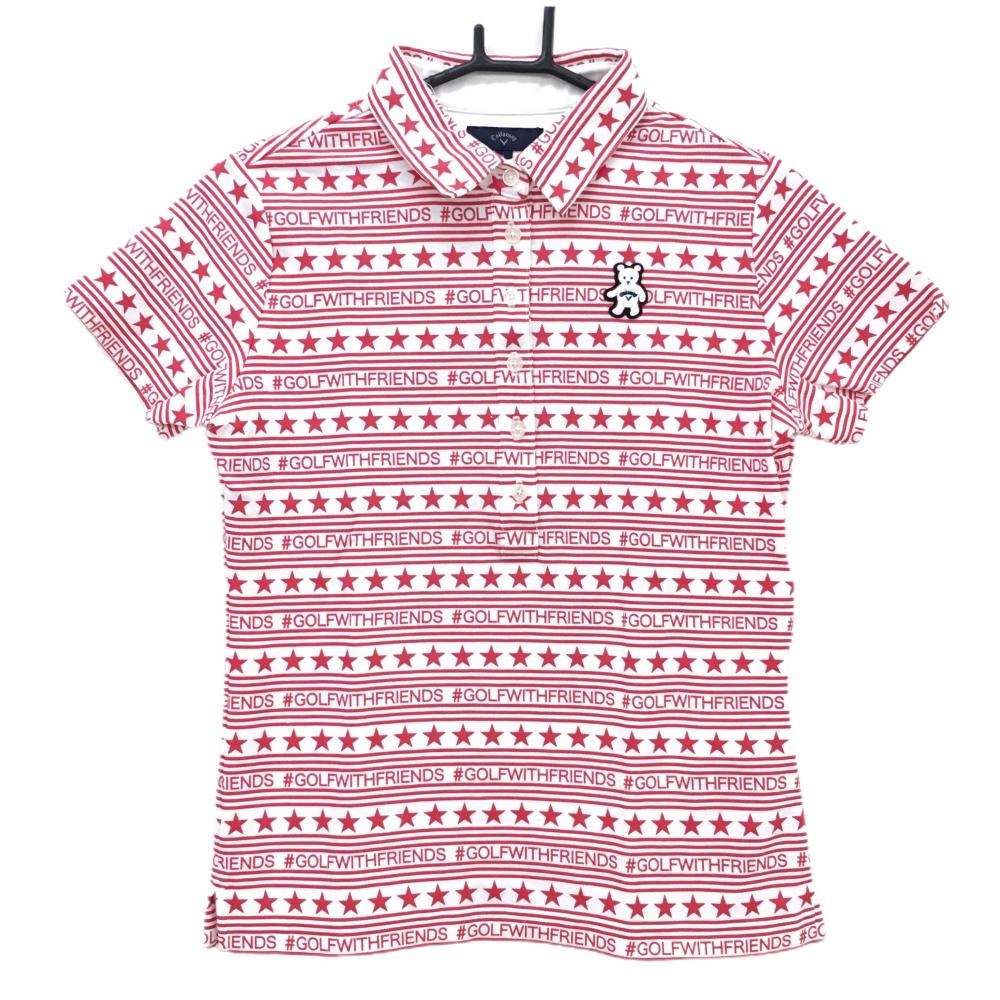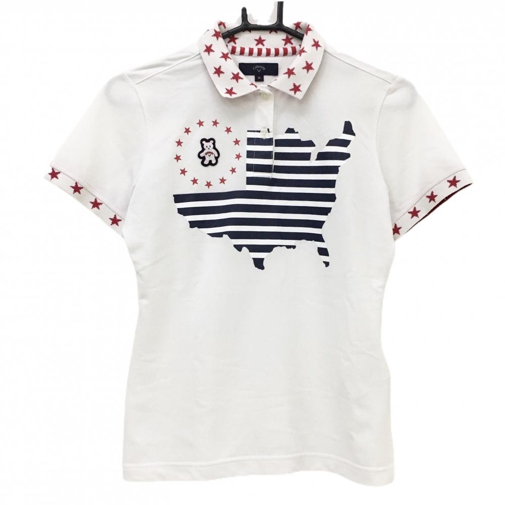 キャロウェイ 長袖ポロシャツ 白×グレー ストライプロゴ刺しゅう レディース S ゴルフウェア Callaway