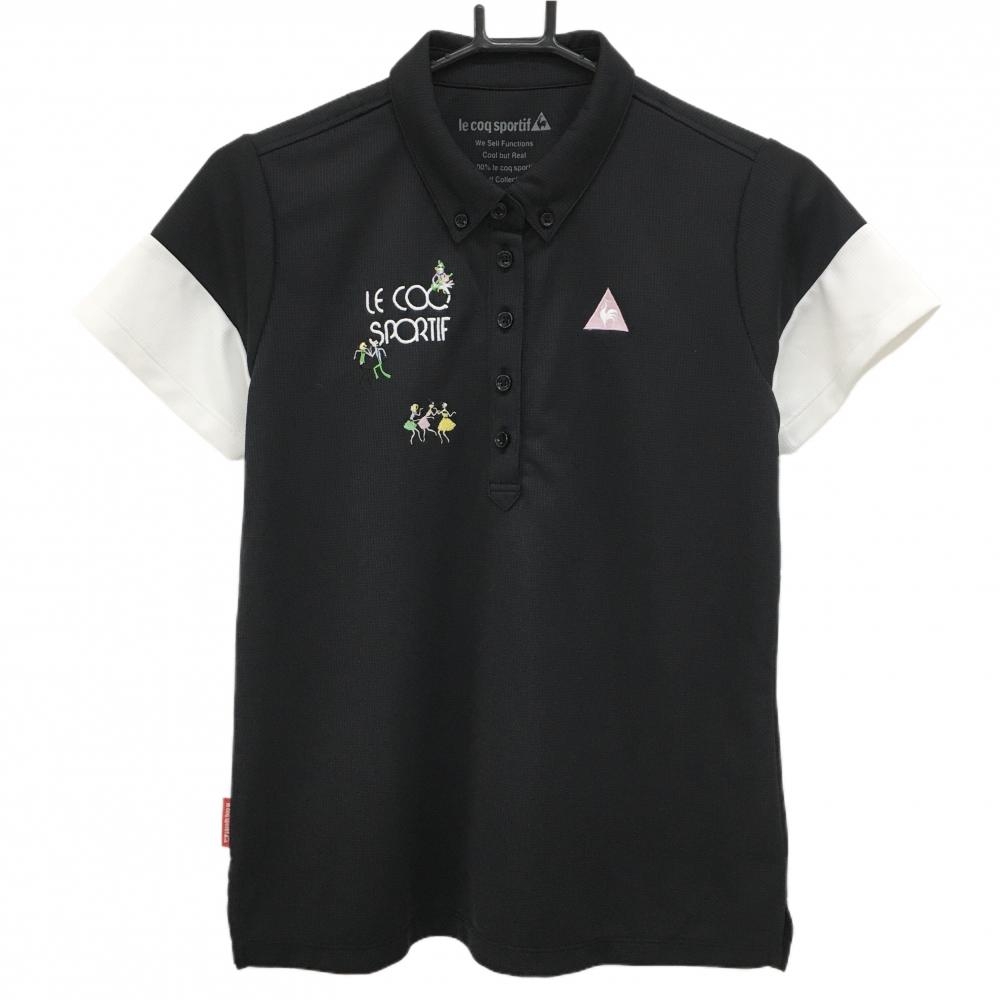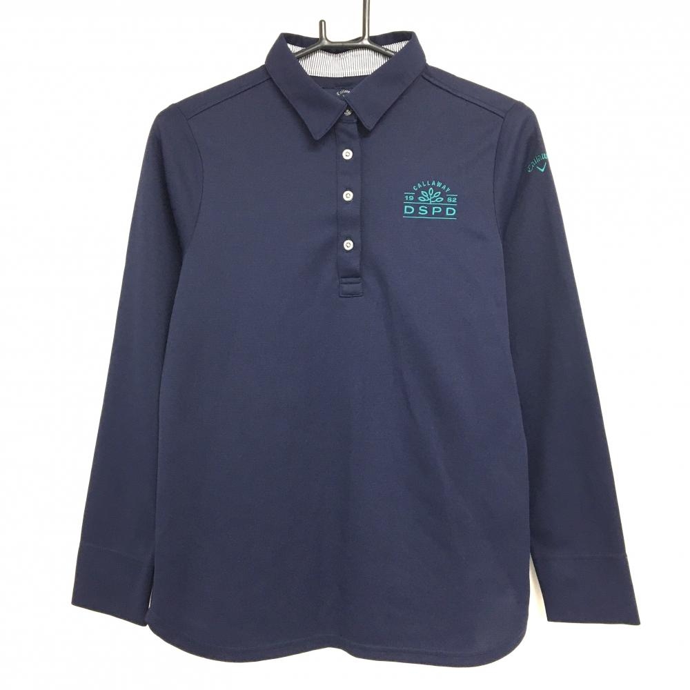 【美品】キャロウェイ 長袖ポロシャツ 黒×ゴールド ロゴ刺しゅう レディース L ゴルフウェア 2023年モデル Callaway