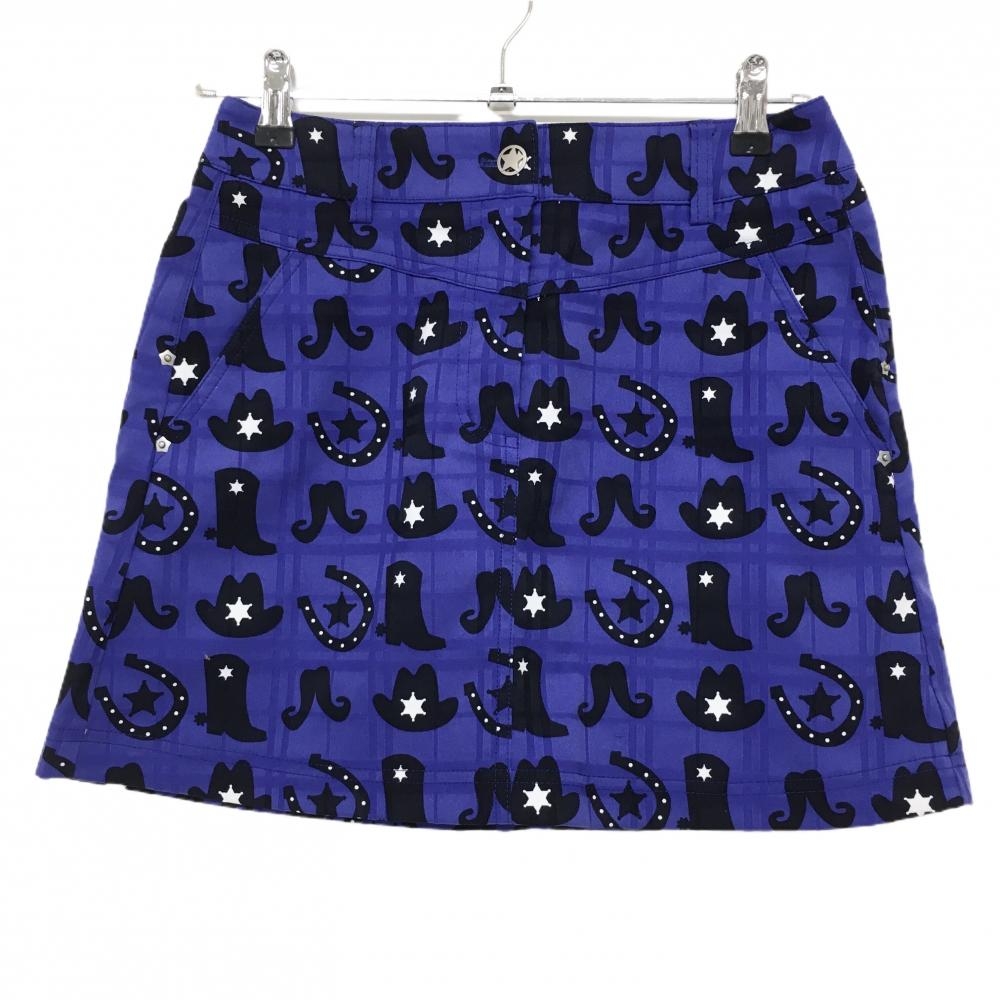 【超美品】バーディーハント スカート ブルー×パープル系 カモフラ風 バックロゴ刺しゅう レディース LL ゴルフウェア Birdie hunt