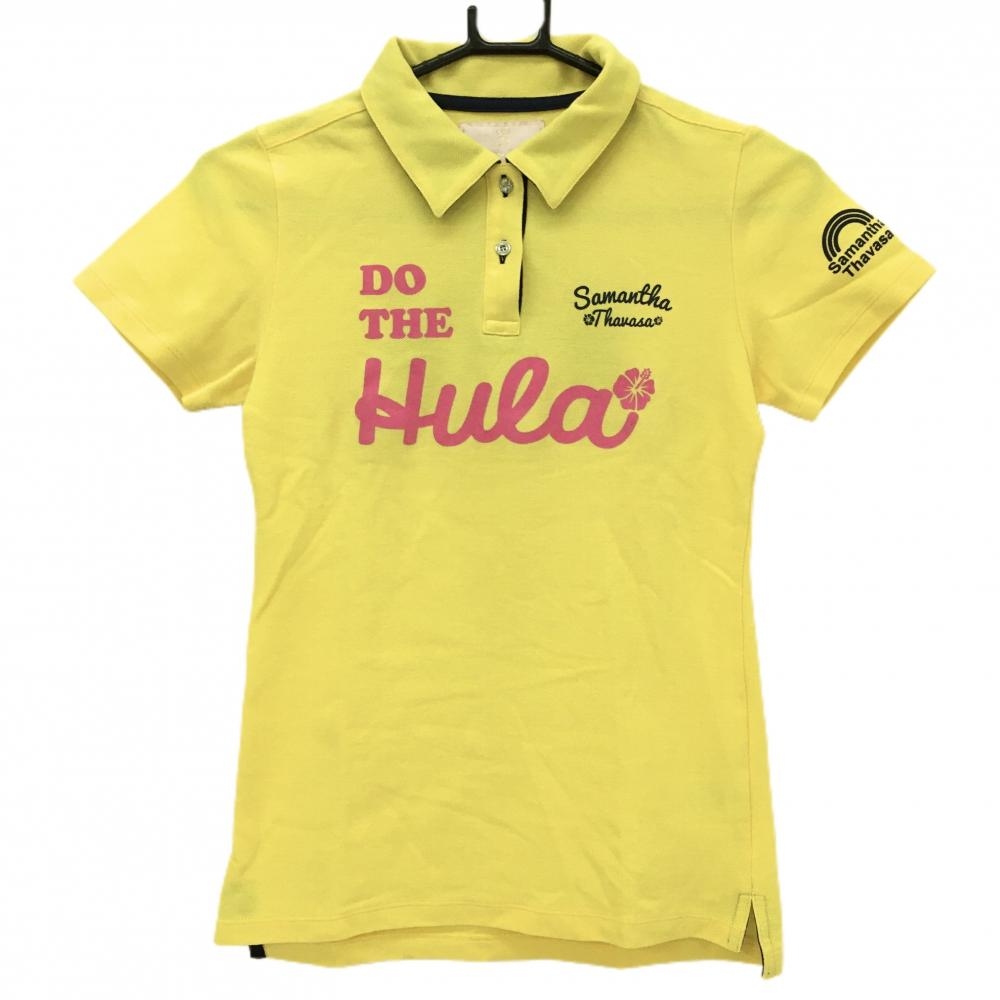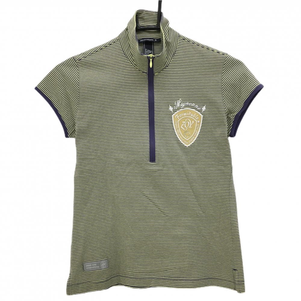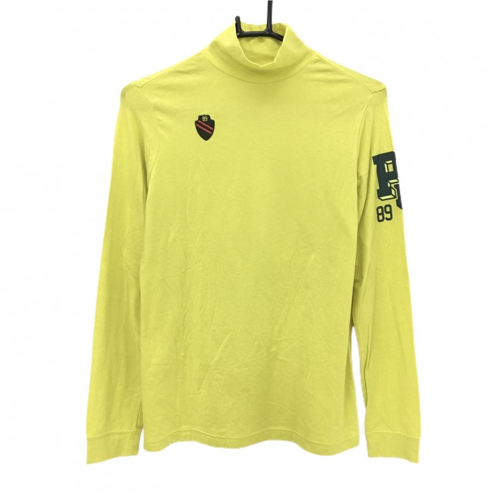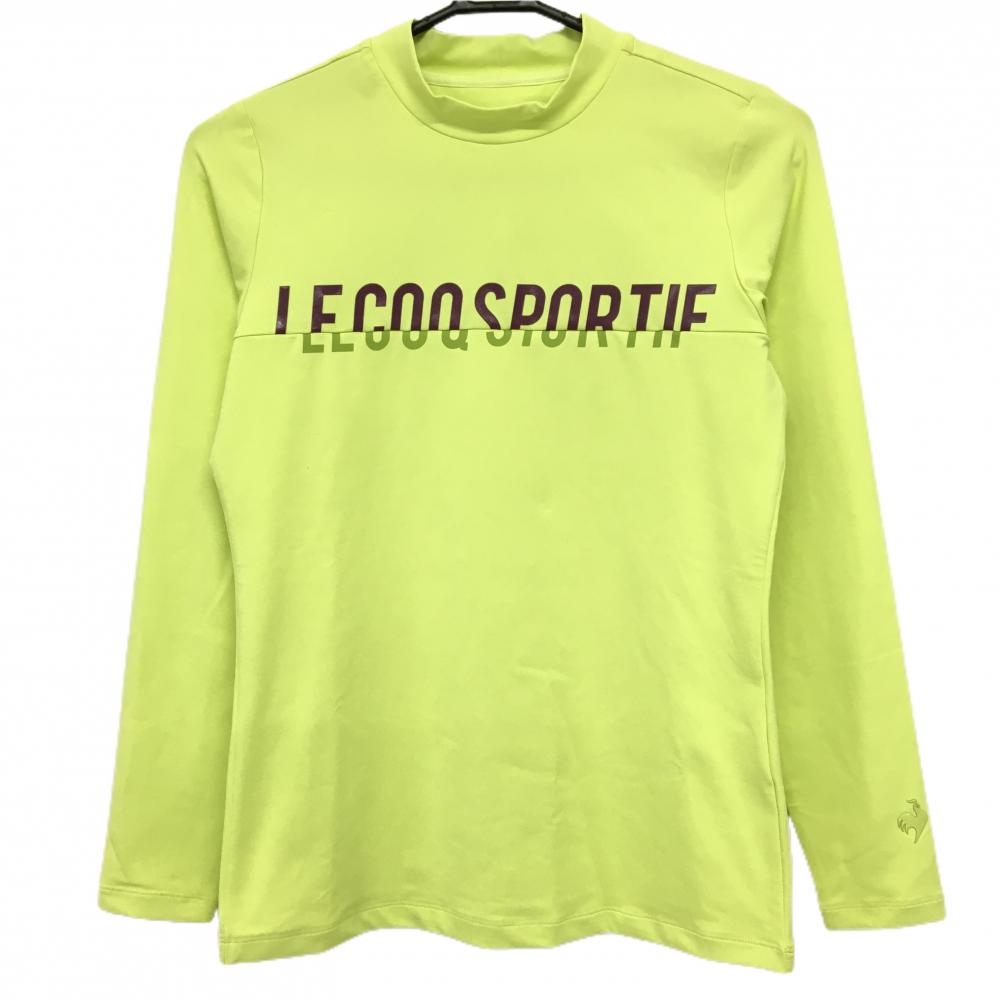 【美品】ルコックゴルフ 長袖ハイネックシャツ イエロー×グリーン フロントロゴ レディース M ゴルフウェア le coq sportif