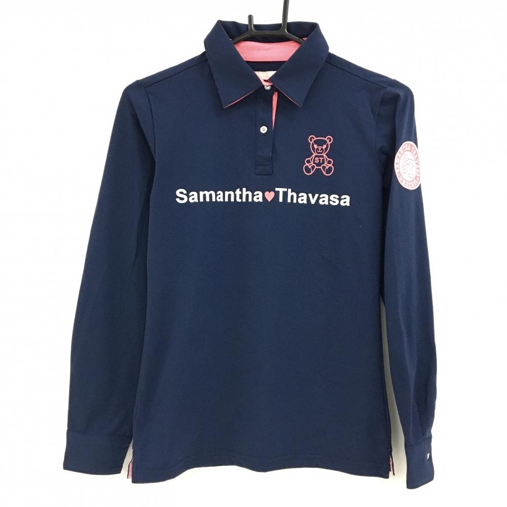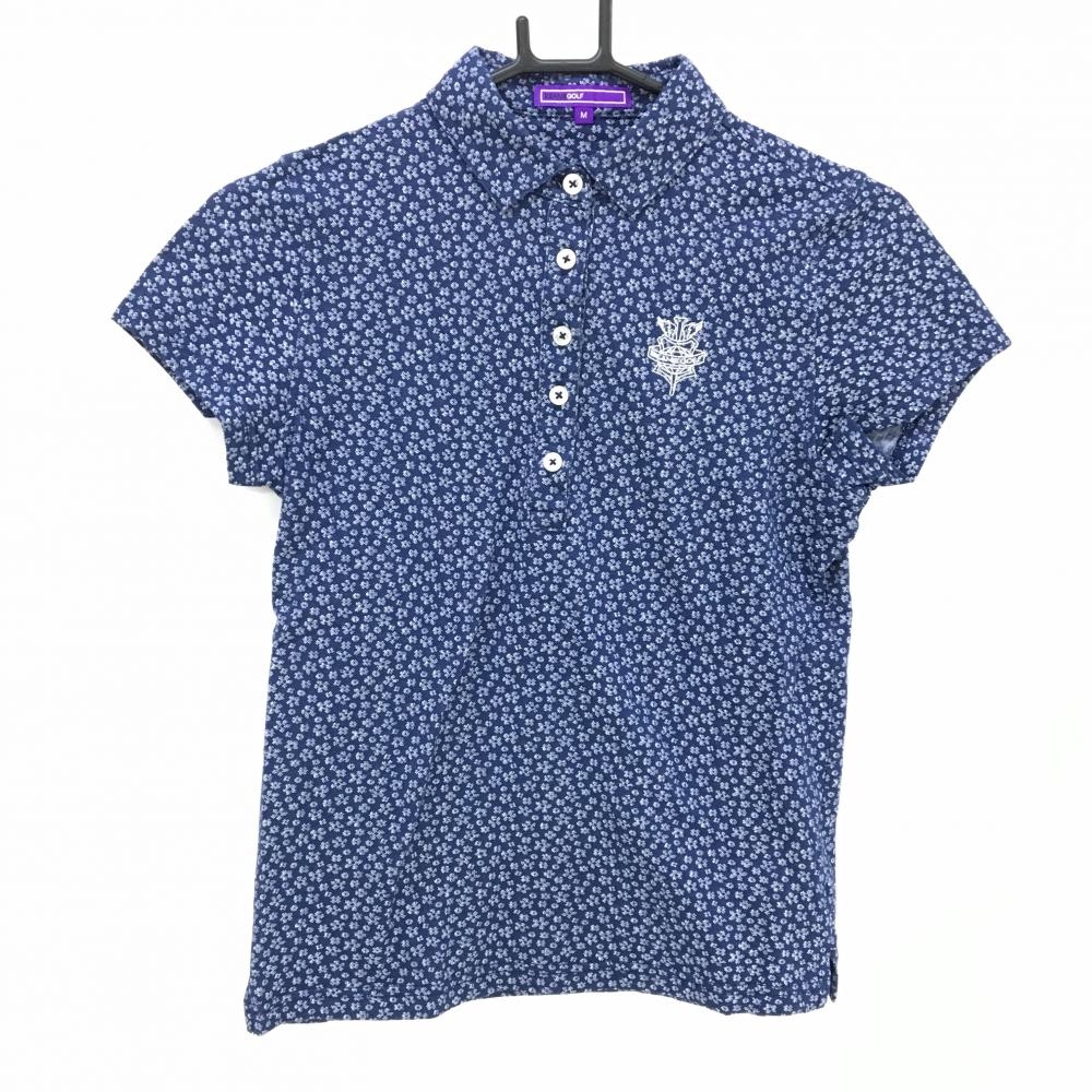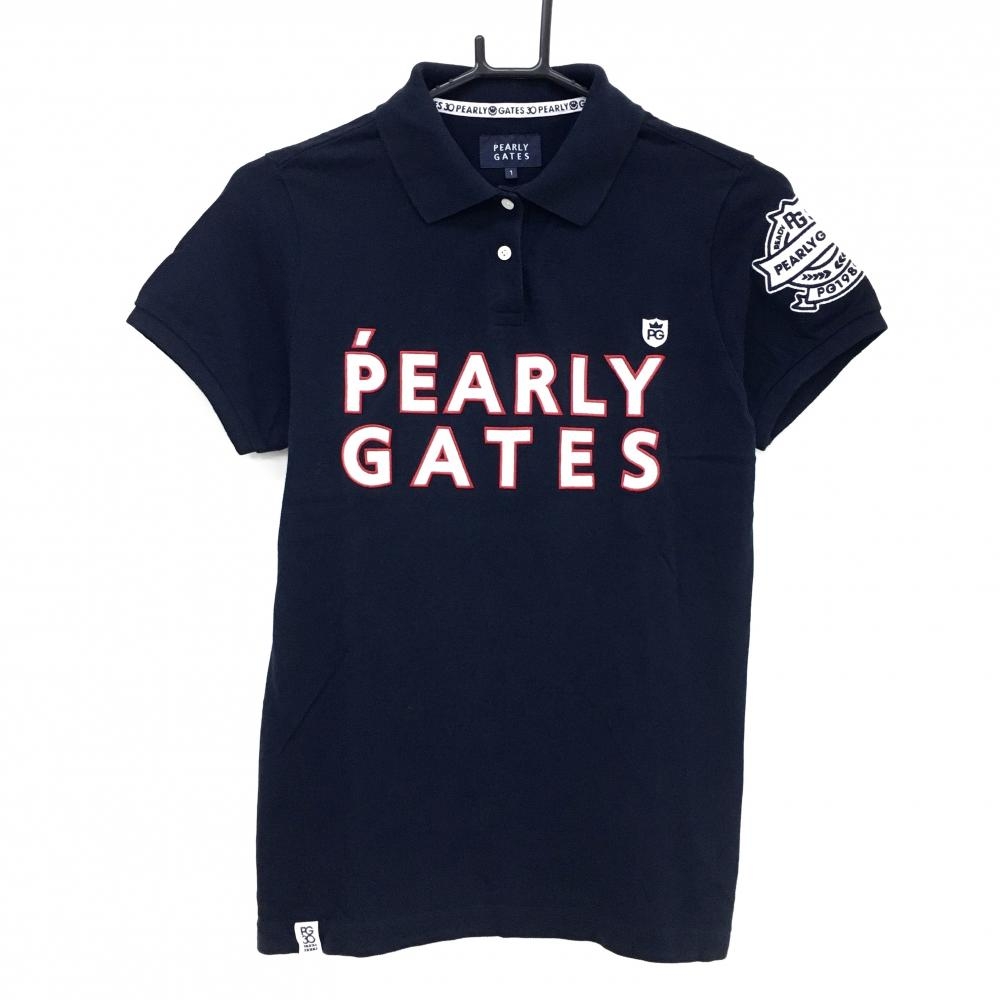 パーリーゲイツ 長袖ポロシャツ ネイビー×白 星総柄 レディース 0(S) ゴルフウェア PEARLY GATES