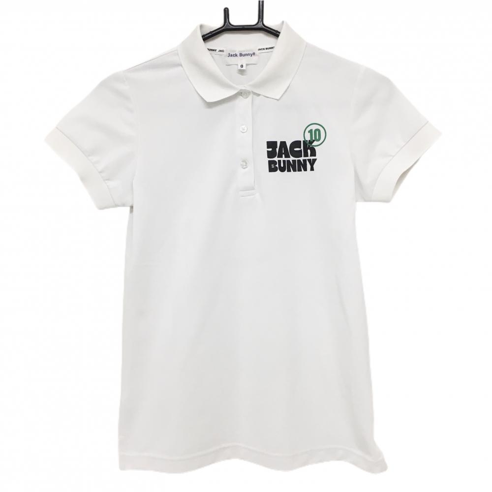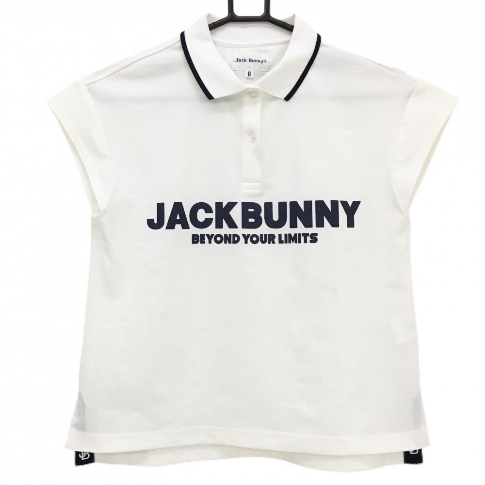 【美品】ジャックバニー 長袖ポロシャツ 白×ネイビー ワッフル生地風 胸ロゴ レディース 0(S) ゴルフウェア Jack Bunny
