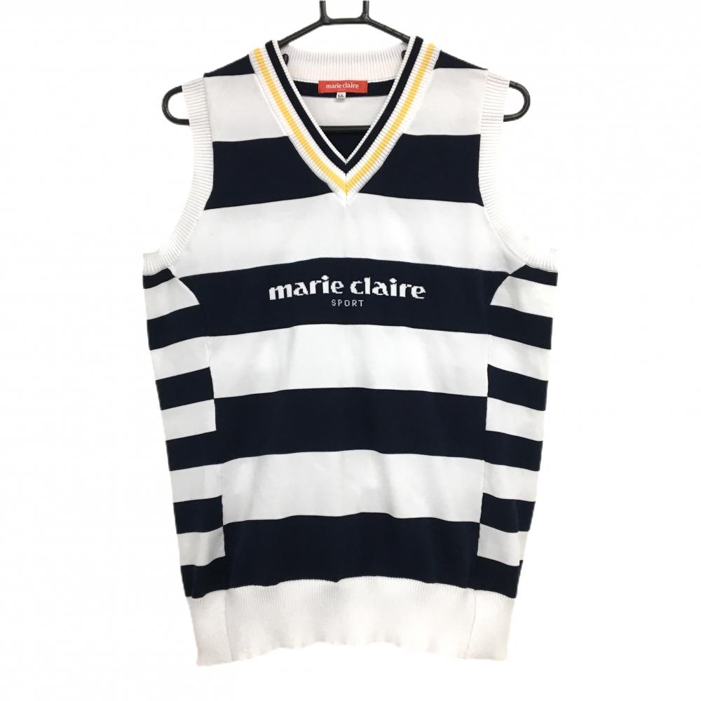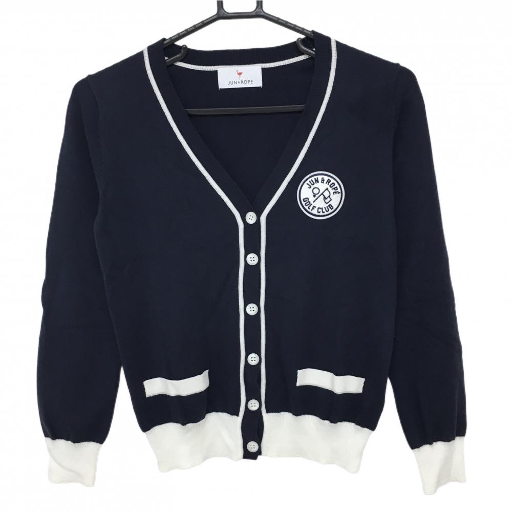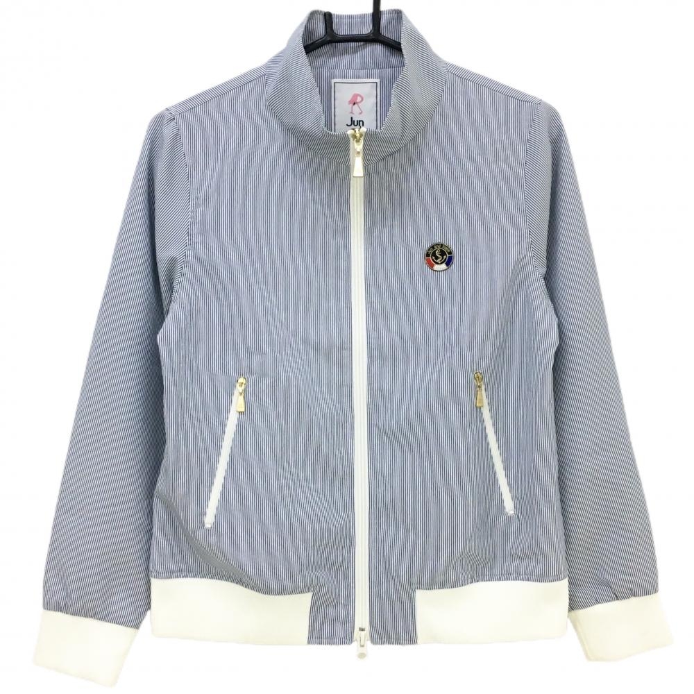 【美品】23区ゴルフ リバーシブルジャケット ネイビー×白 ネック・袖口・裾ライン 裏ニット レディース I(M) ゴルフウェア 23区