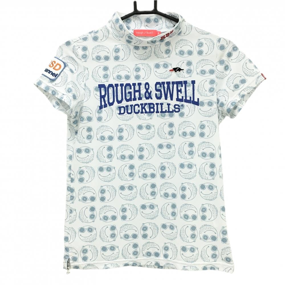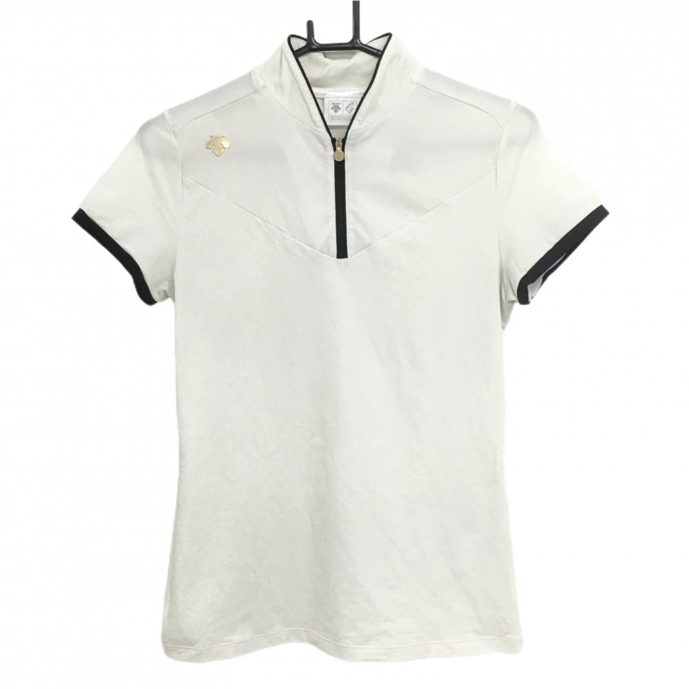 【美品】ルコックゴルフ 長袖ハイネックシャツ 白×ネイビー フロントロゴ レディース M ゴルフウェア le coq sportif
