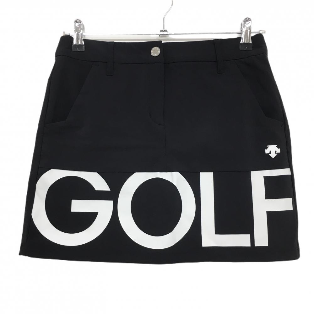 【美品】デサントゴルフ スカート ネイビー×白 チェック 裾ロゴ 中田英寿 レディース S ゴルフウェア DESCENTE