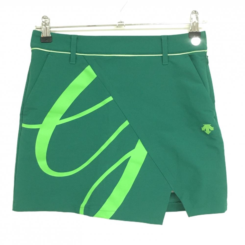 【美品】アディダス スカート グリーン ロゴ刺しゅう 内側インナーパンツ レディース S ゴルフウェア adidas