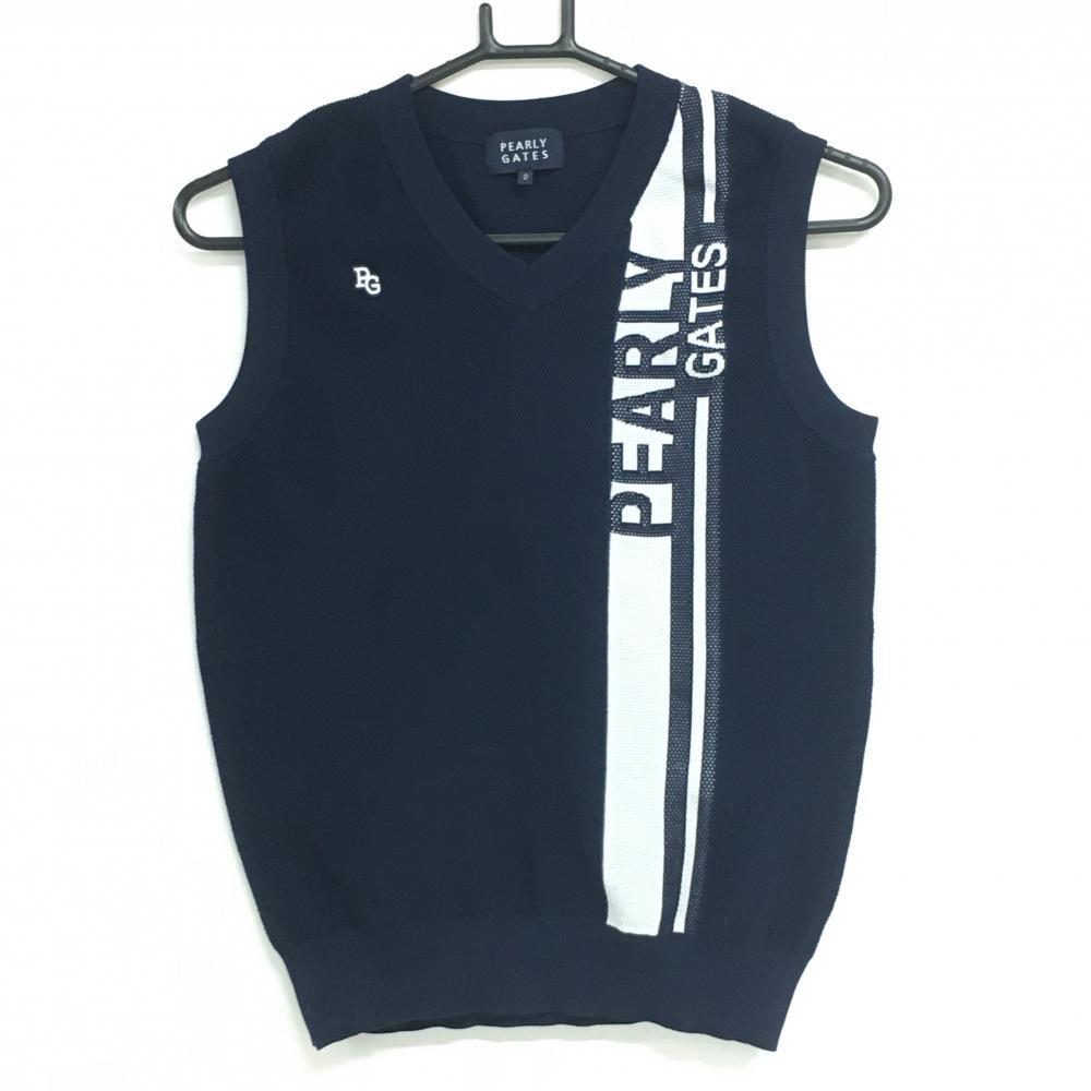 パーリーゲイツ ニットベスト アイボリー×ブルーグリーン系 ウール混 レディース 0(S) ゴルフウェア PEARLY GATES