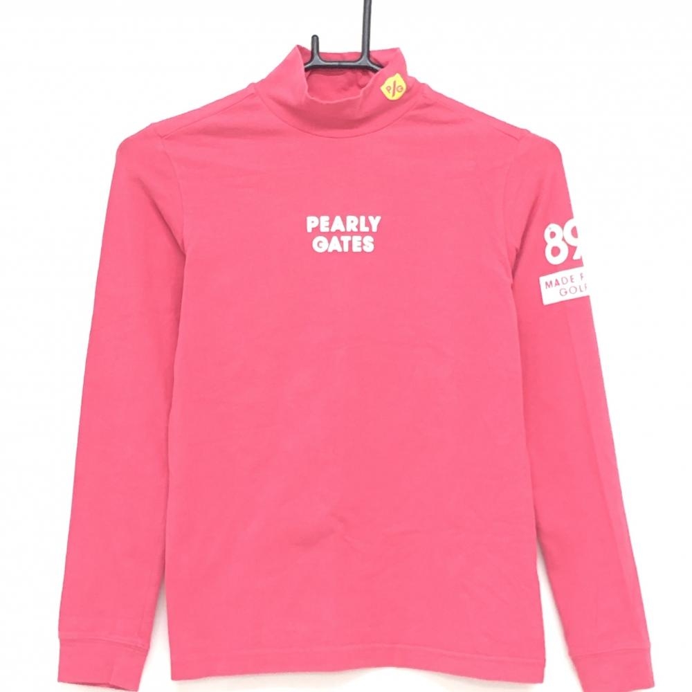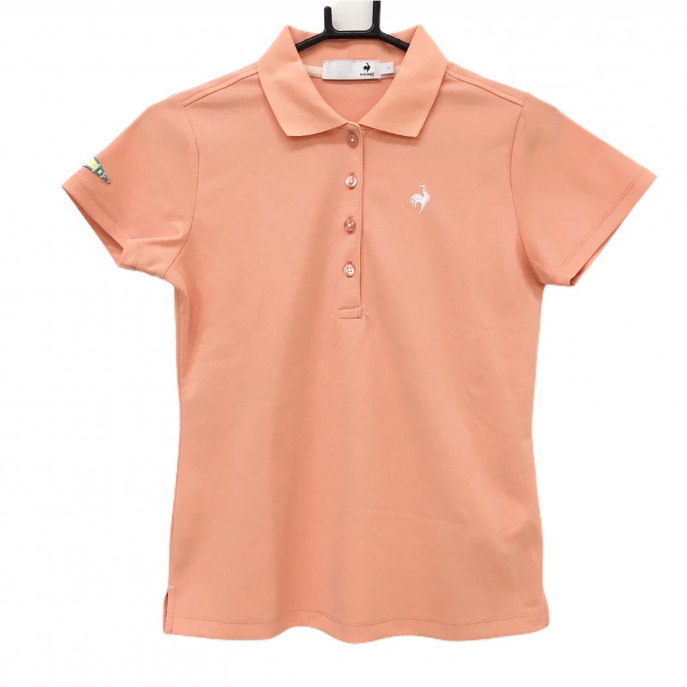 【超美品】ルコックゴルフ 長袖ハイネックシャツ サーモンピンク×白 フロントロゴ レディース M ゴルフウェア le coq sportif