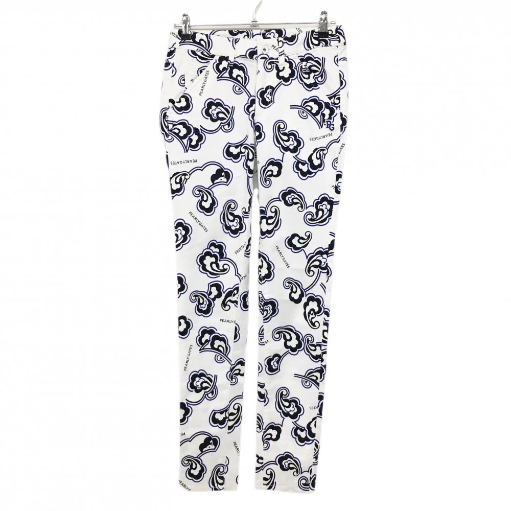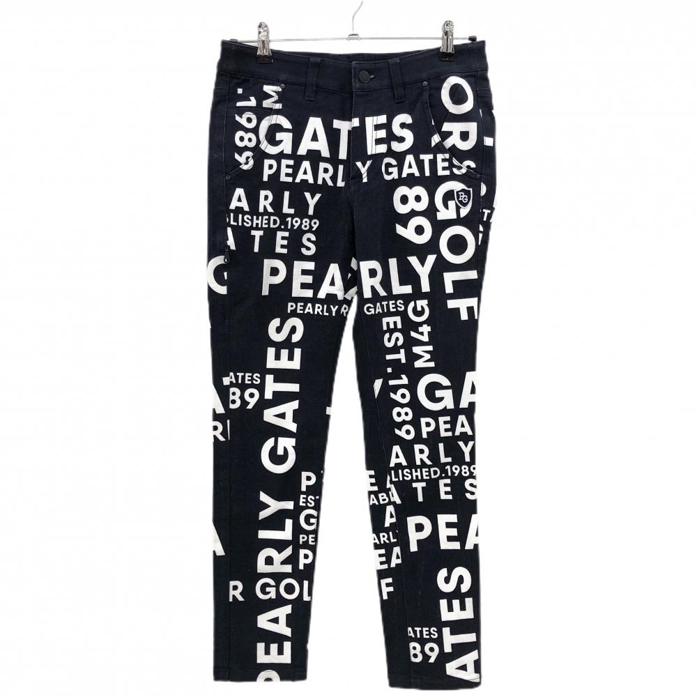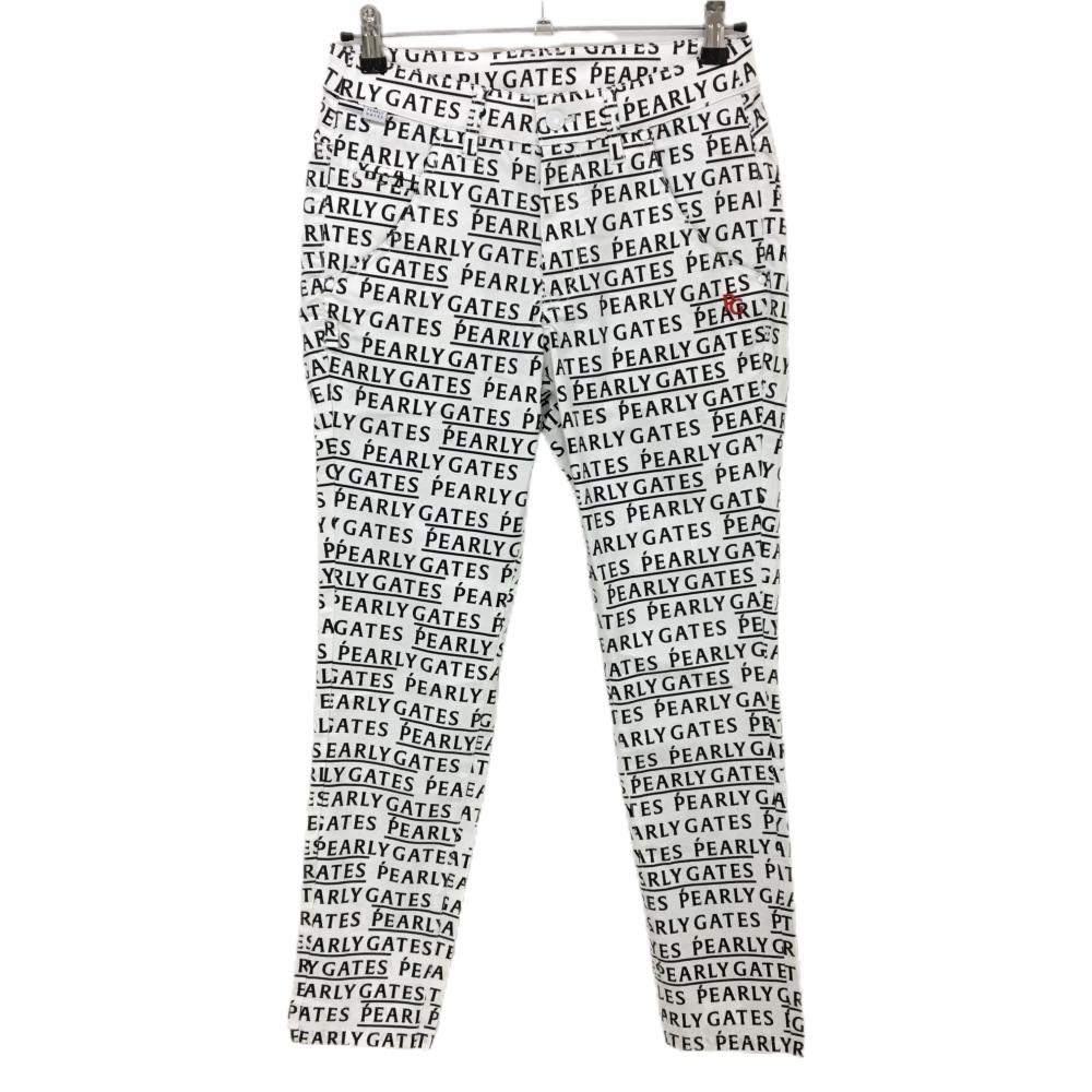 パーリーゲイツ パンツ 黒×白 ロゴ総柄 くじら ストレッチ レディース 1(M) ゴルフウェア PEARLY GATES