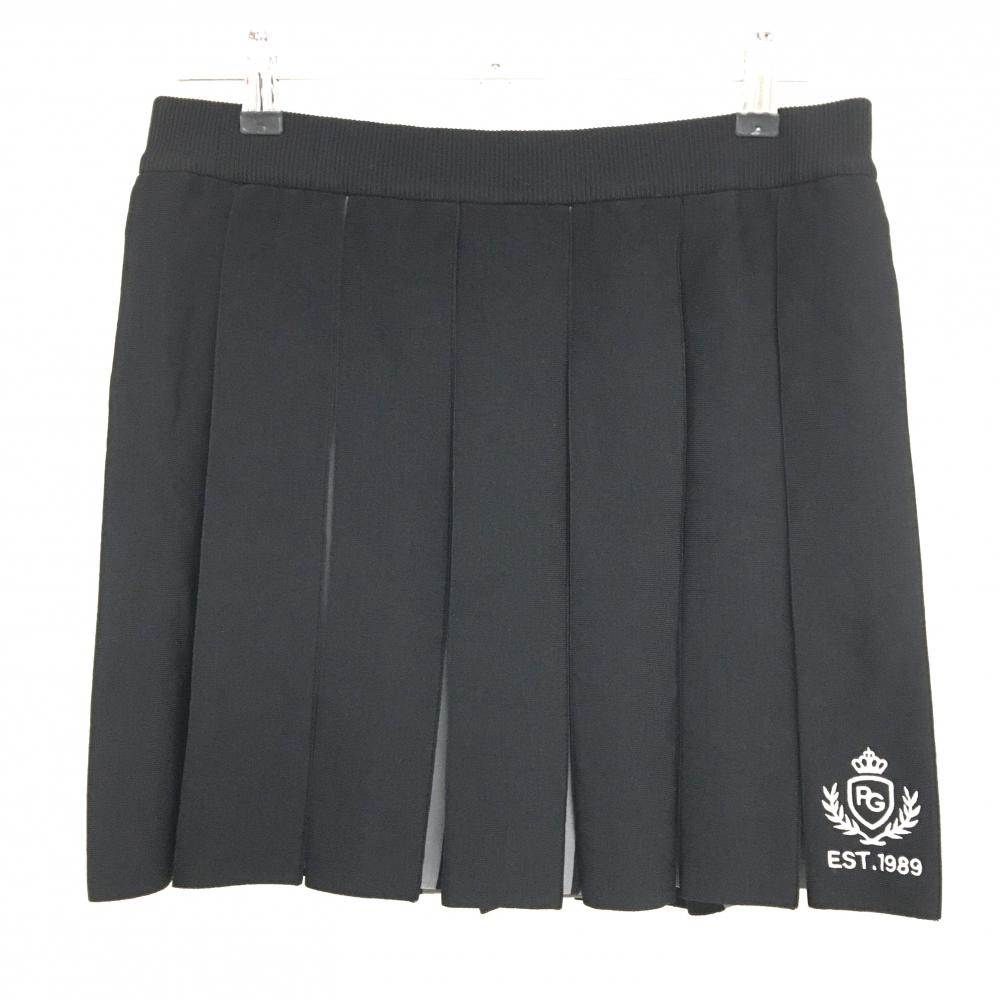 【超美品】マリクレールスポール スカート 黒×グレー ロゴ総柄 一部ボックスプリーツ レディース LL ゴルフウェア marie claire