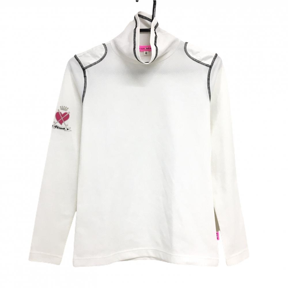 【超美品】ビバハート 長袖ハイネックシャツ 白×ピンク ロゴ総柄 ハーフジップ レディース L ゴルフウェア VIVA HEART