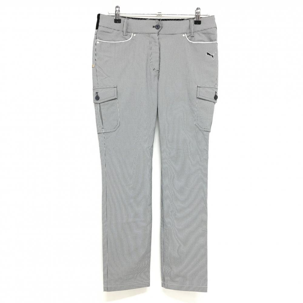 【超美品】コルウィン パンツ グレー×白 チェック柄 バックロゴ刺しゅう レディース 15 ゴルフウェア Kolwin