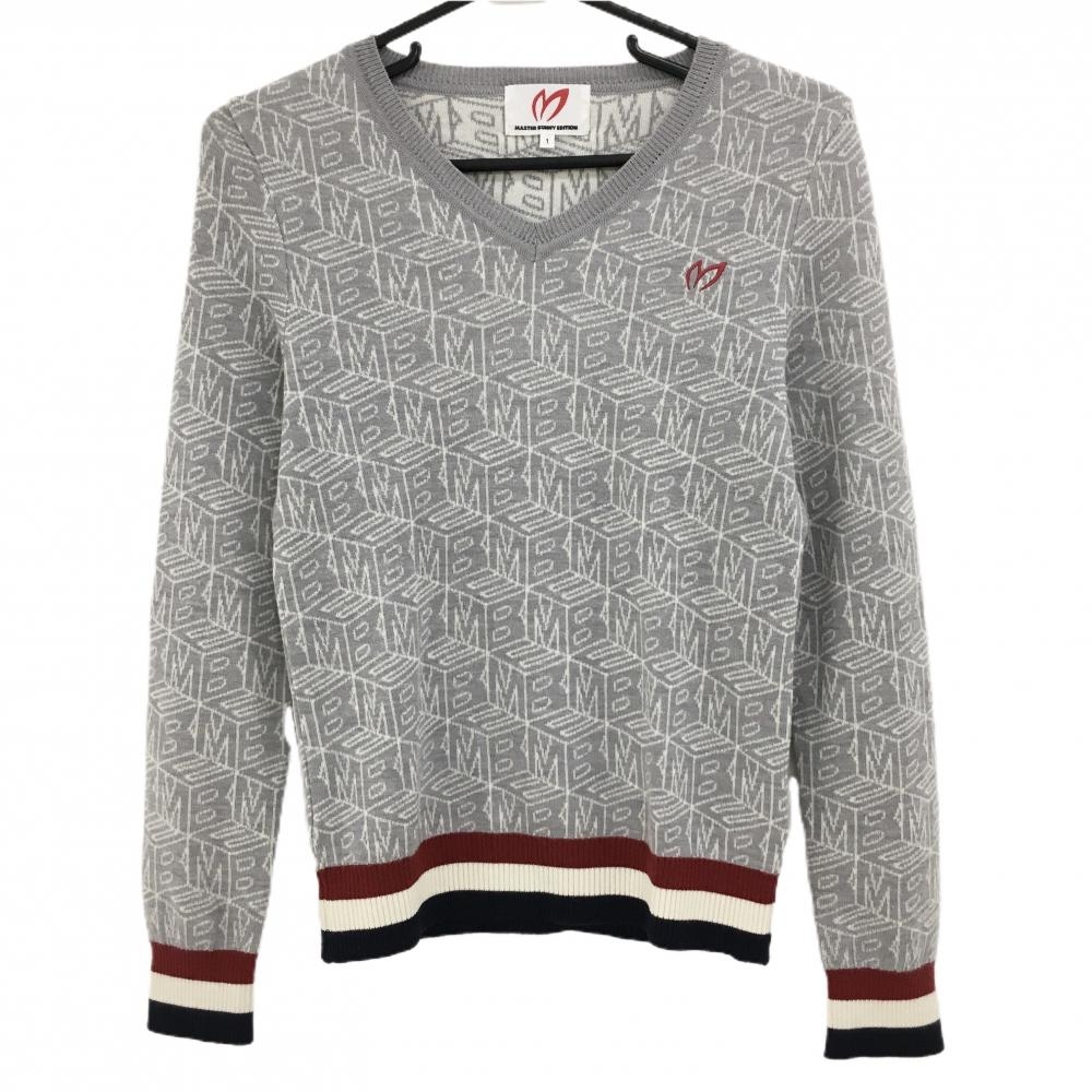 【超美品】マスターバニー セーター 黒×ネイビー ロゴ総柄 ウール混 レディース 1(M) ゴルフウェア MASTER BUNNY EDITION