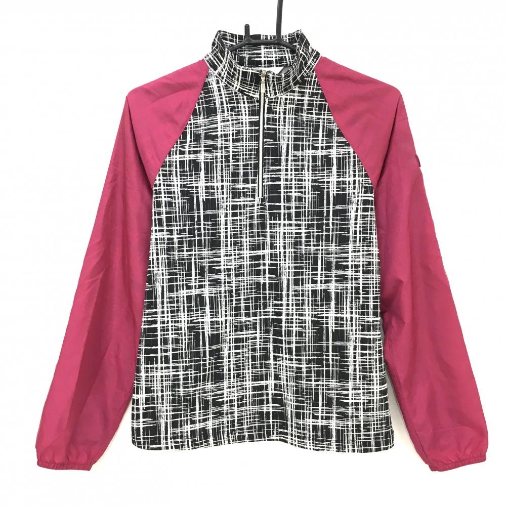 【美品】アダバット アウターベスト ピンク 格子柄地模様 ダブルジップ 薄手 レディース 38(M) ゴルフウェア adabat