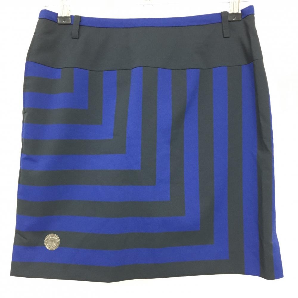 【美品】ラウドマウス スカート ブルー×グリーン ストライプ ロゴ刺しゅう レディース US-14 ゴルフウェア 大きいサイズ LOUDMOUTH